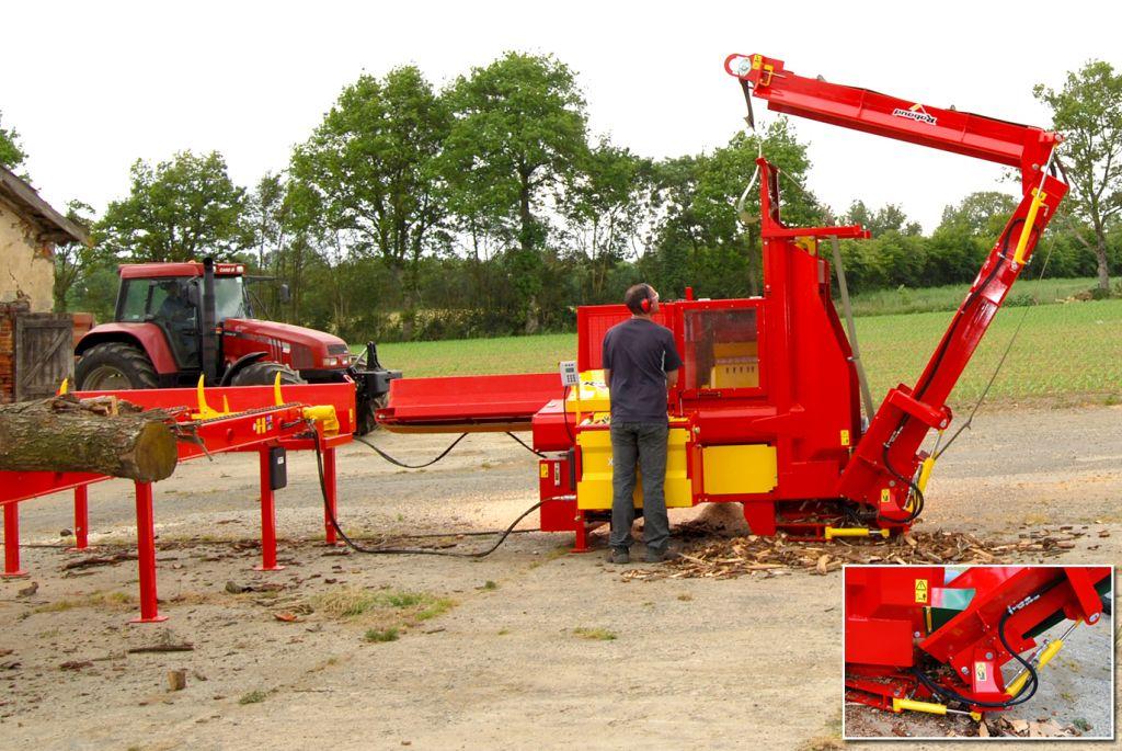 Wood processor for firewood, accepting logs up to 420 mm in diameter. Robust and French design.