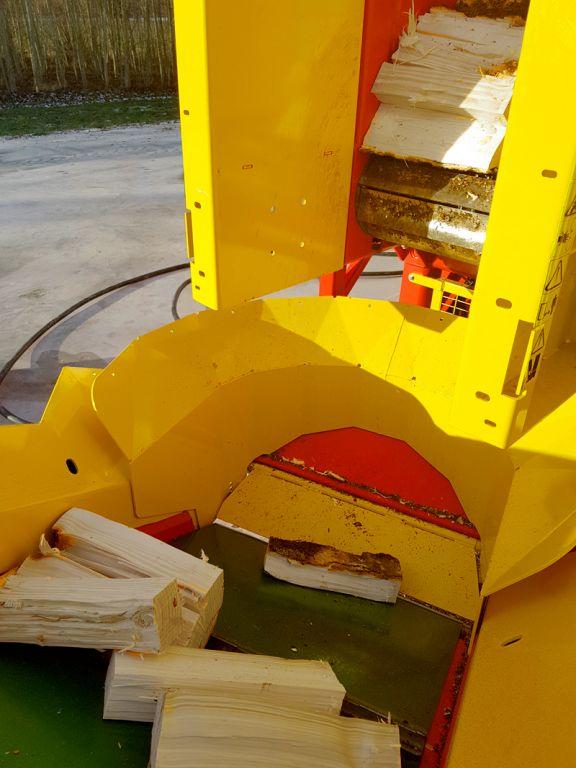 - Possibility to evacuate directly the pieces that are not to be split without passing through the splitting cross (Ø 200 mm max). The wood scraps can also be evacuated to the rear thanks to the pallet.