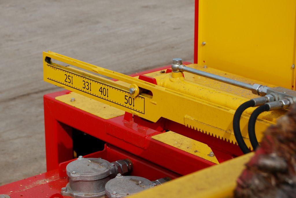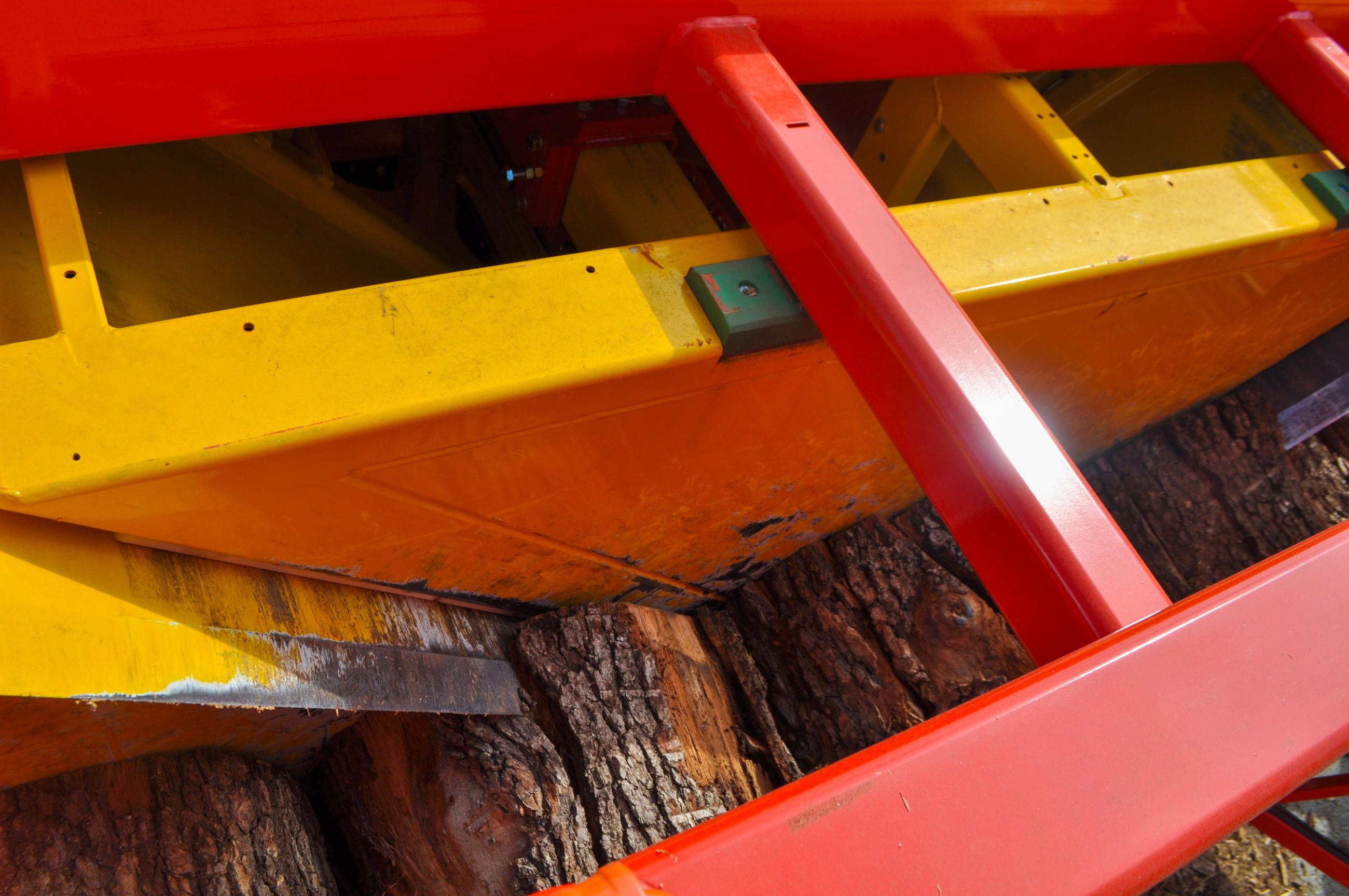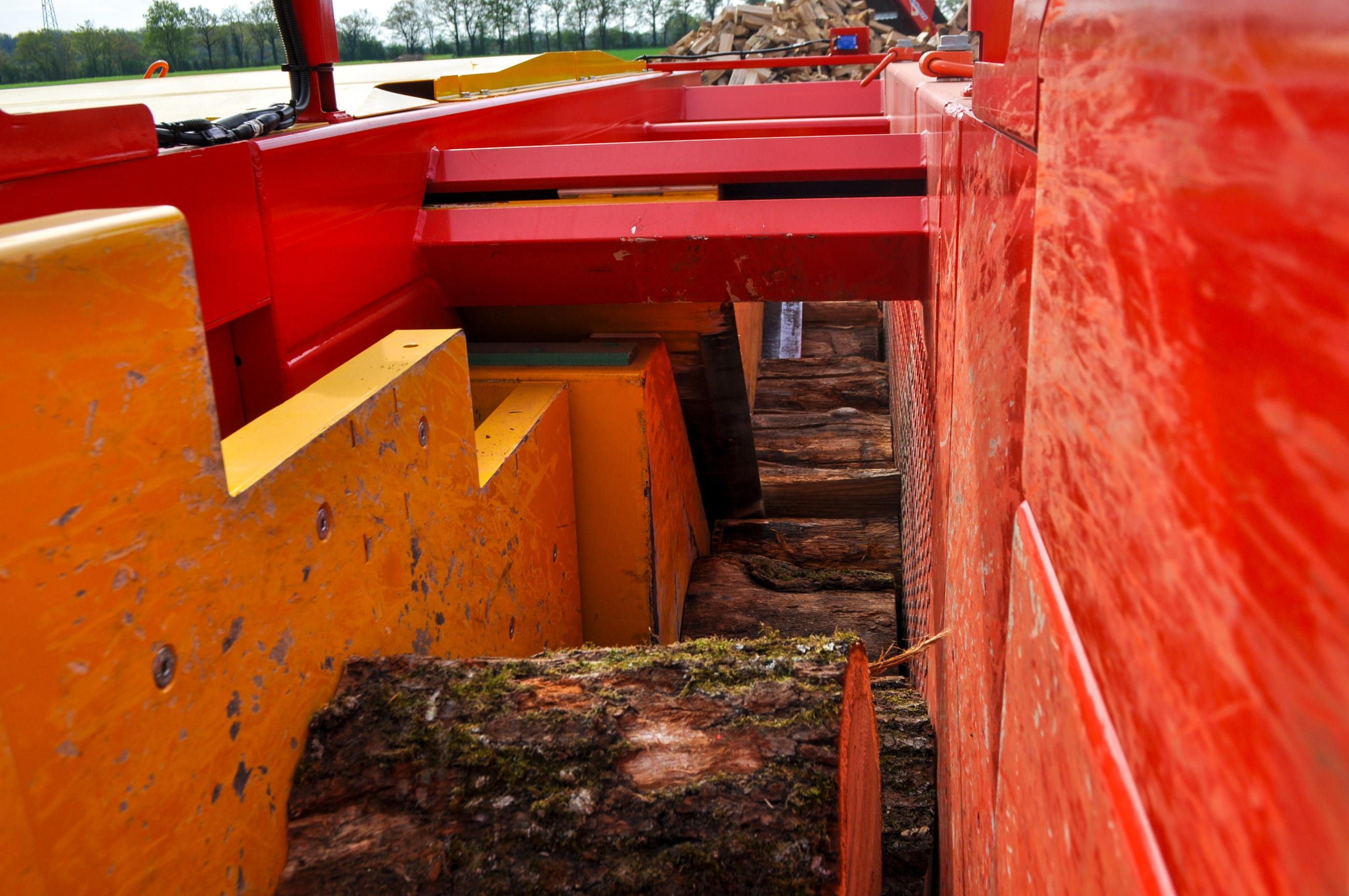 - On the splitting area, a metal conveyor with an adjustable pace feed from 40 to 300 mm for the size of the logs.