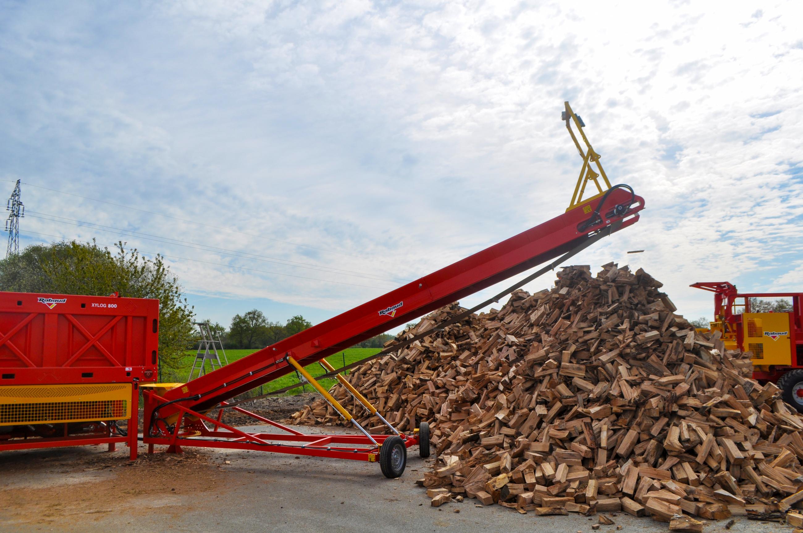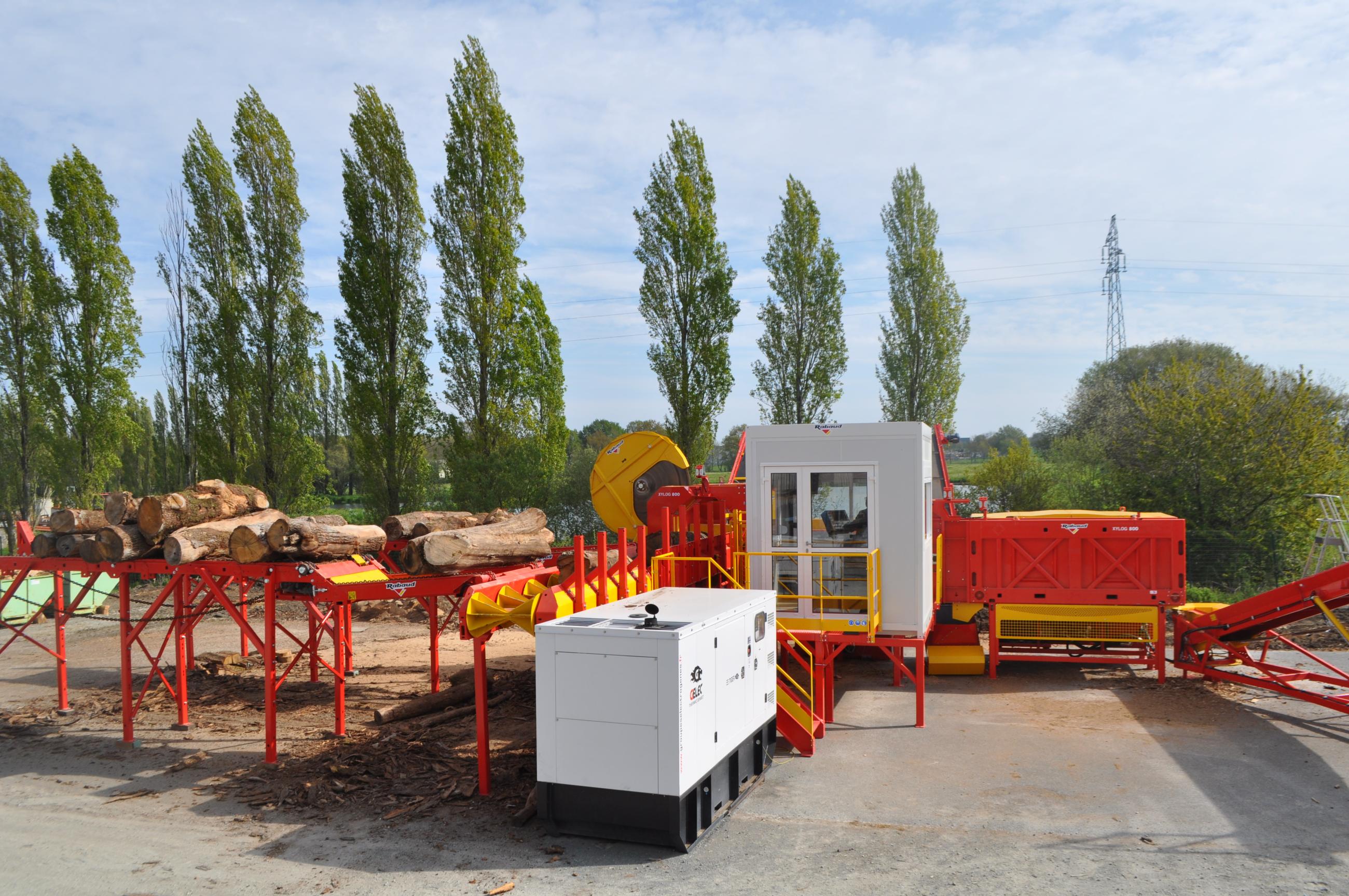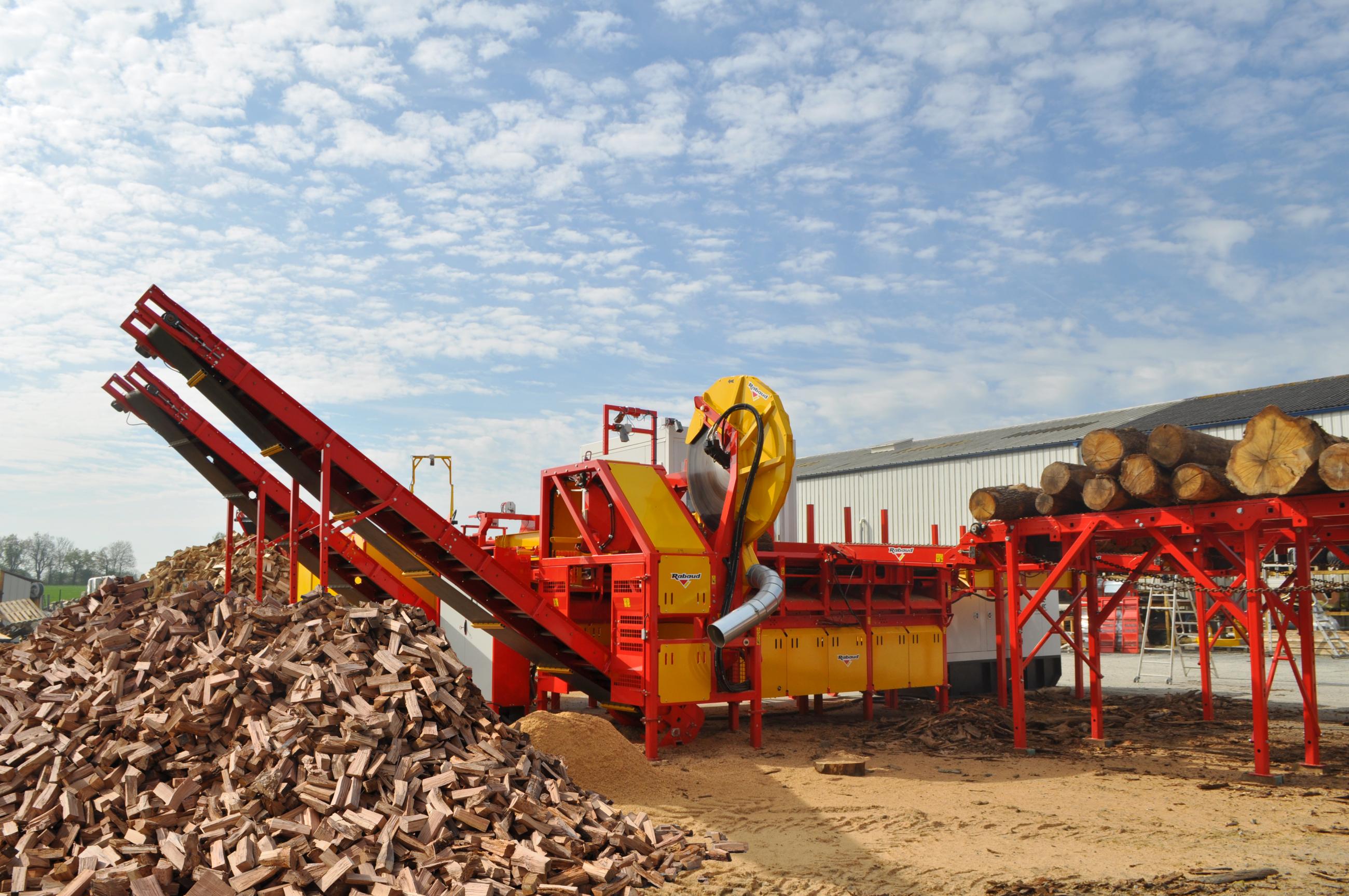 After the XYLOG 520 and the XYLOG 600, RABAUD expands its range of firewood processors with a model designed for industrial use: the XYLOG 800. Accepting logs up to 800 mm in diameter, this fixed version sawing and splitting combination unit is ideal for intensive and large-scale log production.