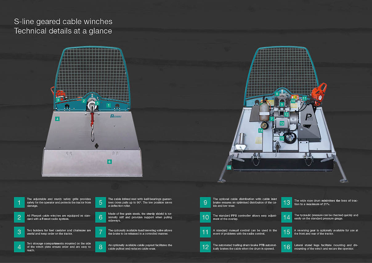 The S-line cable winches are equipped with a radio control system for safe, comfortable, and gentle working. The operator is thus not in the danger zone and can detect obstacles.