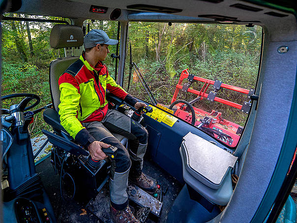 In forestry, the Pm Trac is not only convincing in classic forwarding use. In addition to the use with a forestry mulcher for area cultivation, the Pm Trac can also show its full potential with an energy woodcutting gripper. When used with a felling unit or a mulching head on the forestry crane which requires a higher hydraulic power, a powerful auxiliary hydraulic system can be installed.