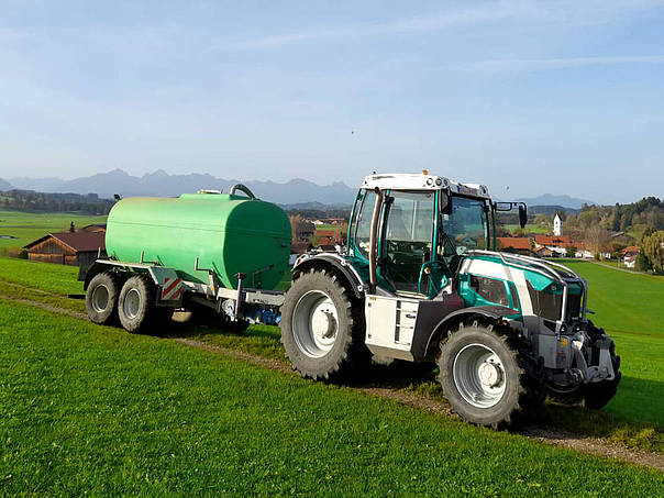 Thanks to the rear attachment space with rear power lift, other implements such as mower spreaders can also be driven in combination with an additional edge mower or area mulcher.