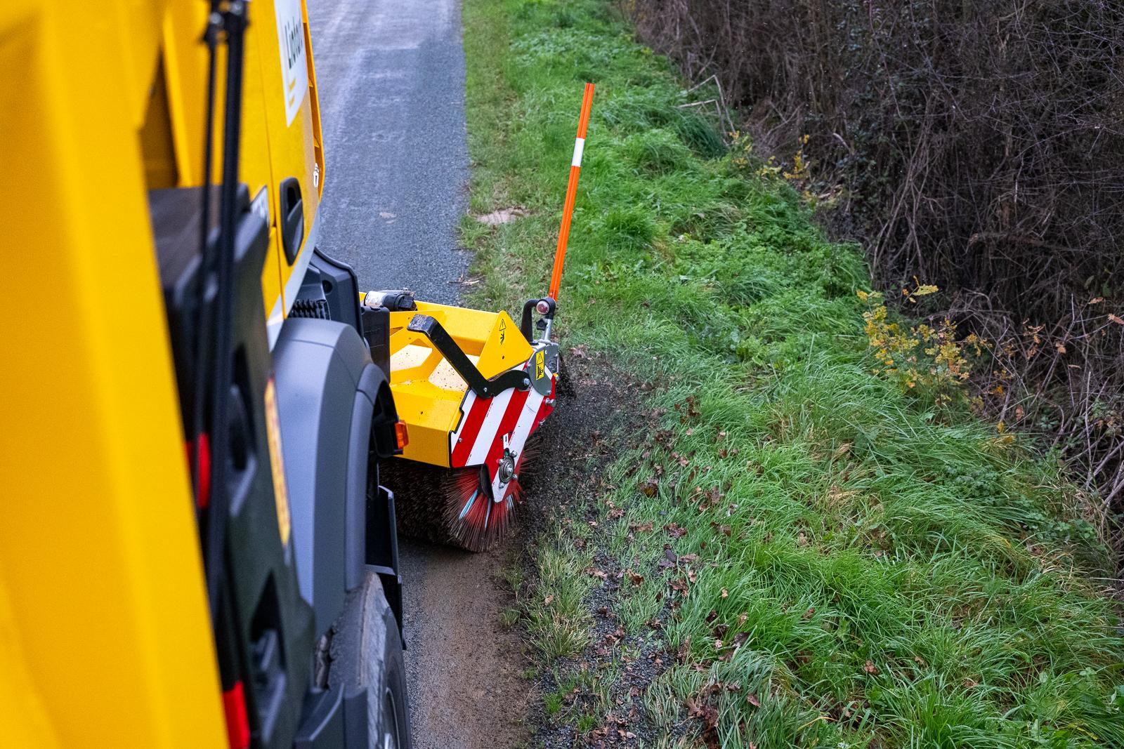 Balayeuse frontale adaptable sur attache plaque SETRA. Machine renforcée, la setraclean est idéale pour les travaux intensifs d’entretien routier.