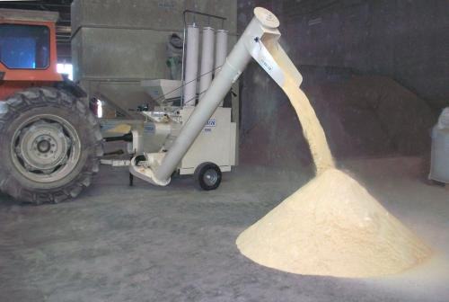 Vis d’extraction de farine de différentes longueurs, inclinée manuellement, selon les besoins du client et pour le déchargement du produit transformé sur des wagons de transport spéciaux