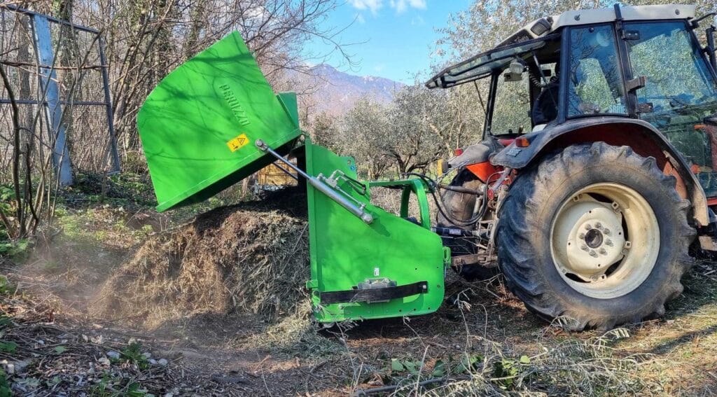 Ce broyeur travaille des tailles jusqu’à 6 cm de diamètre et le déchargement du produit coupé et recueilli dans le grand caisson, se fait à terre à l’aide de pistons hydrauliques spéciaux. Il est équipé de série de masses forgées robustes et auto-affûtantes et sur demande il est possible de monter un convoyeur frontal, utile pour faciliter l’entrée de grands volumes d’élagage. Enfin, le rouleau arrière aide à niveler la surface inhabitée en donnant un aspect lisse et compact au sol. La machine dispose également d’un multiplicateur en fonte à roue libre : une sécurité supplémentaire pour l’opérateur