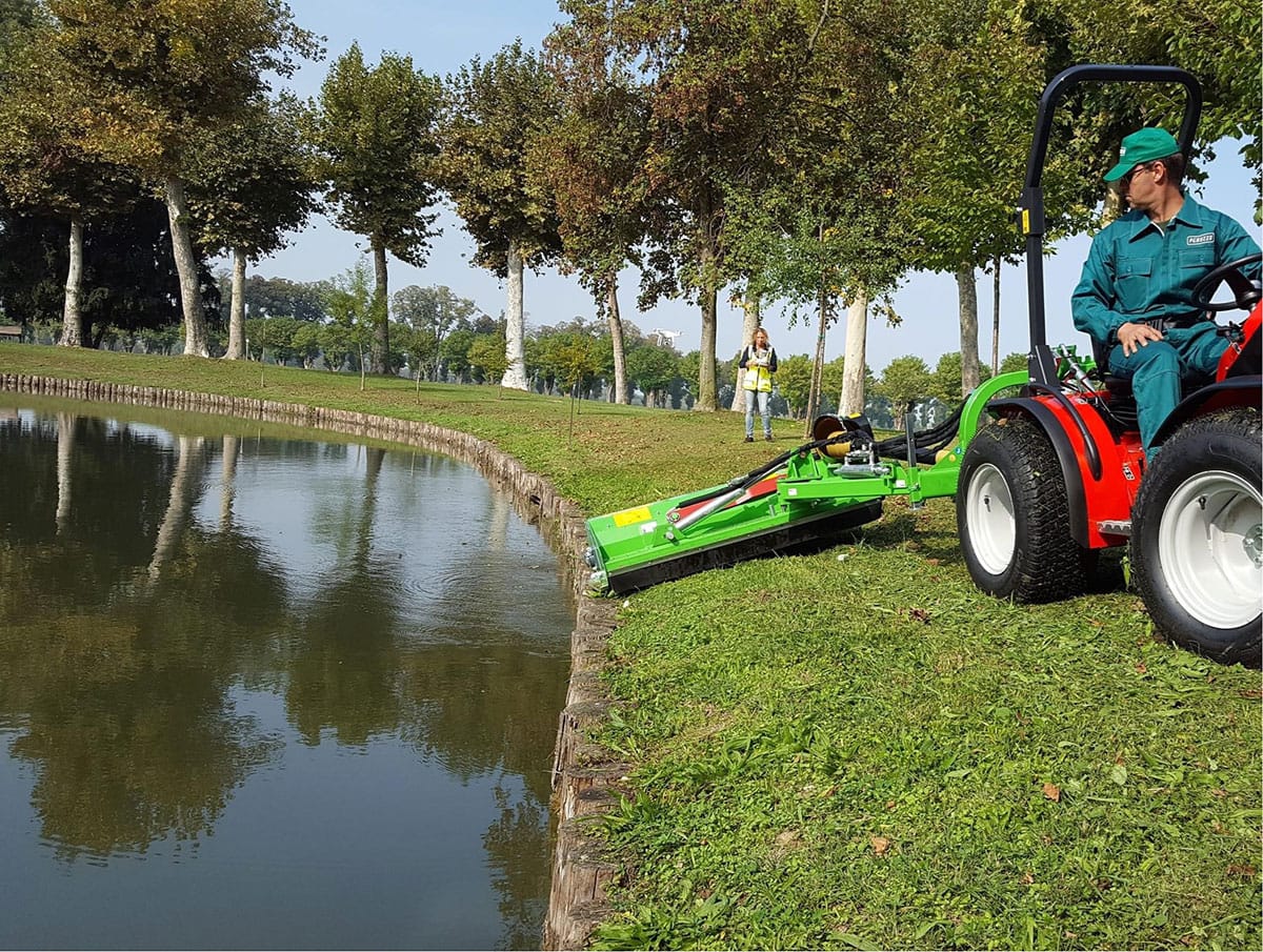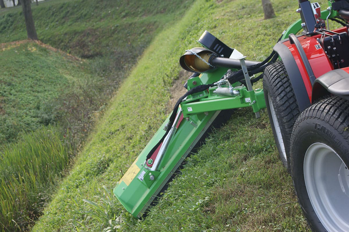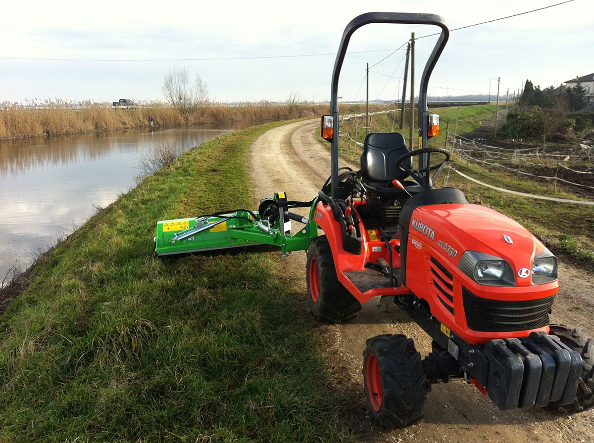 6. Broyeurs latéraux : ils sont montés sur le côté du tracteur et sont utilisés pour l’entretien des bords de route, des fossés et des pentes.