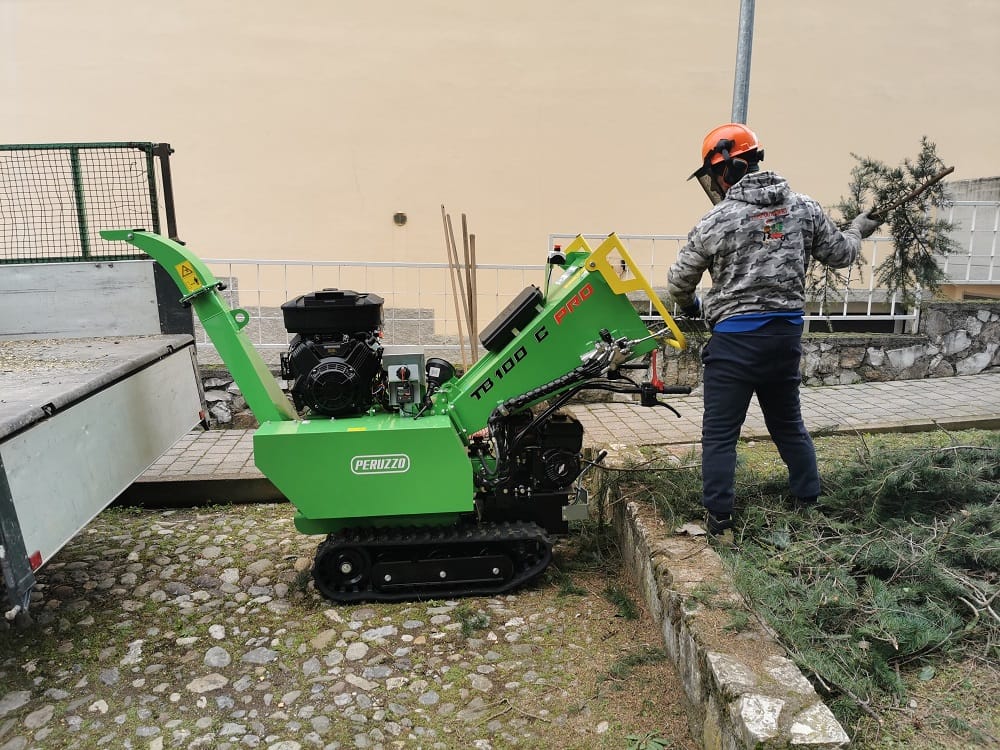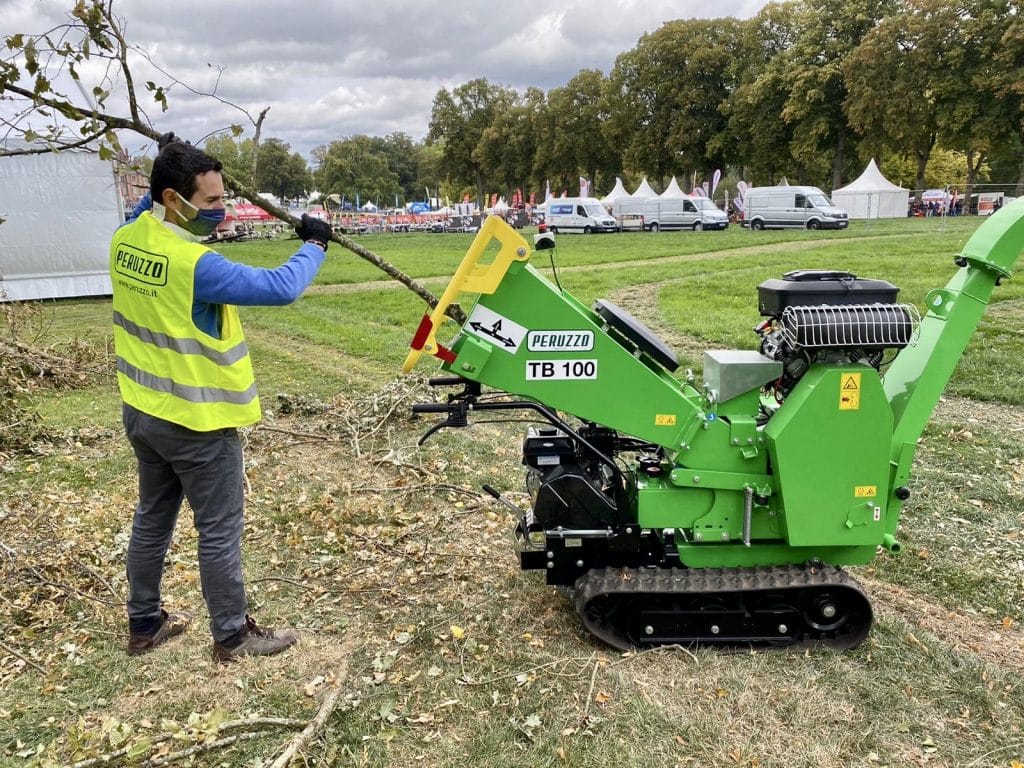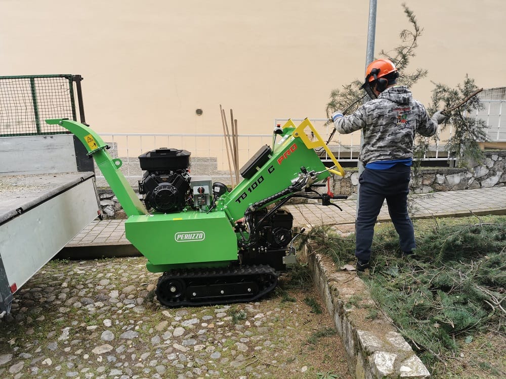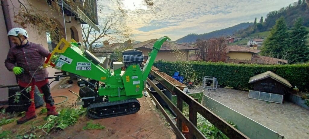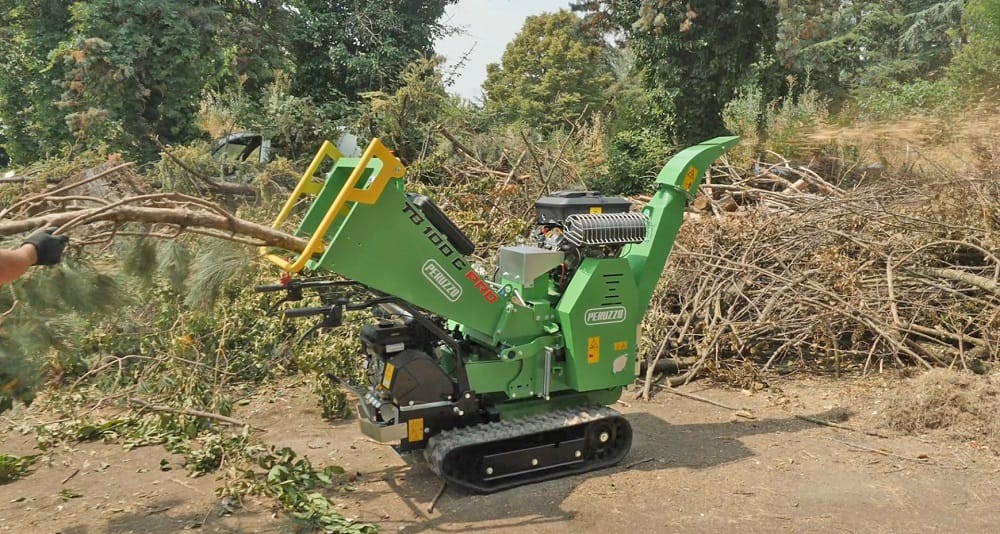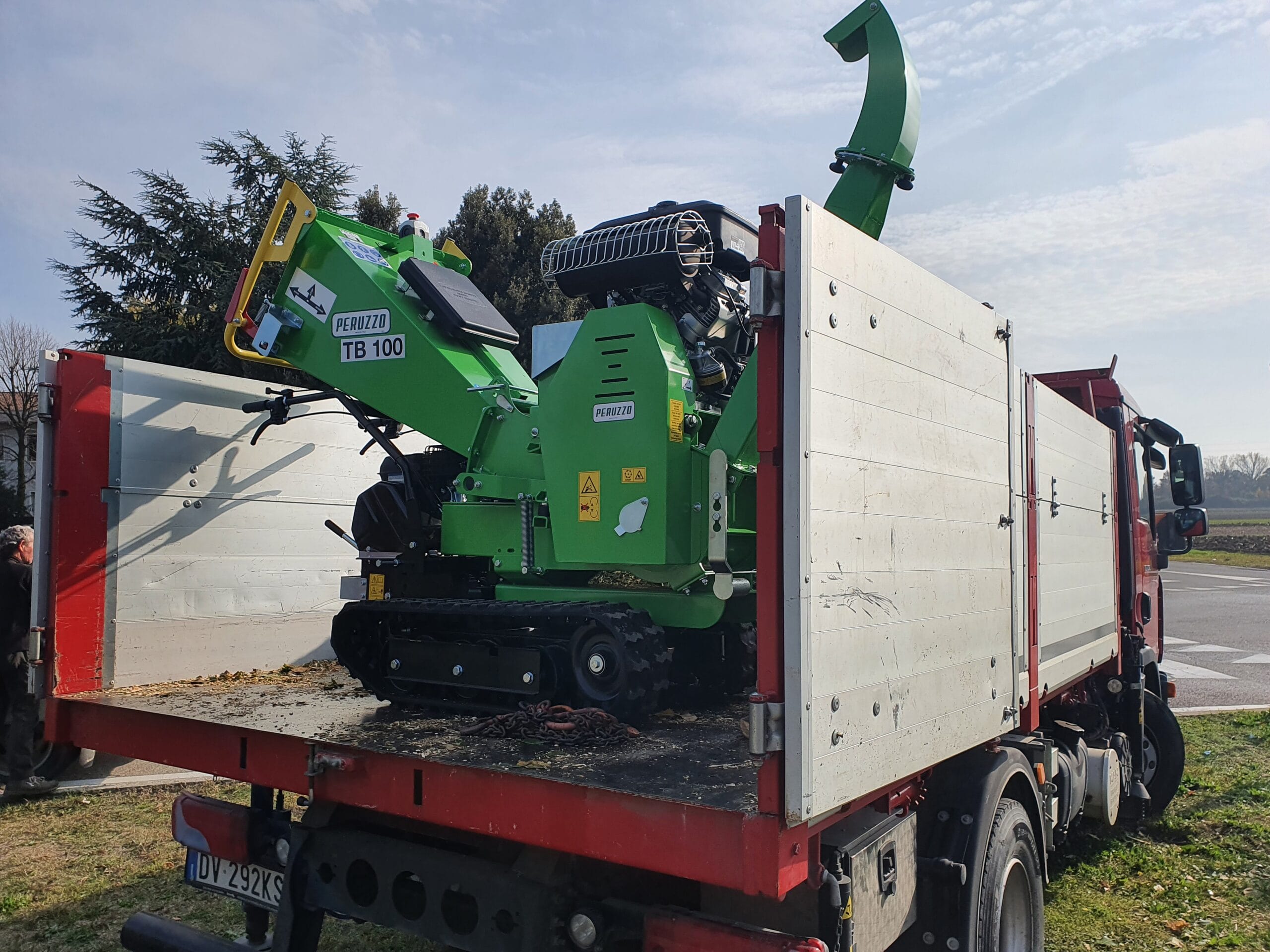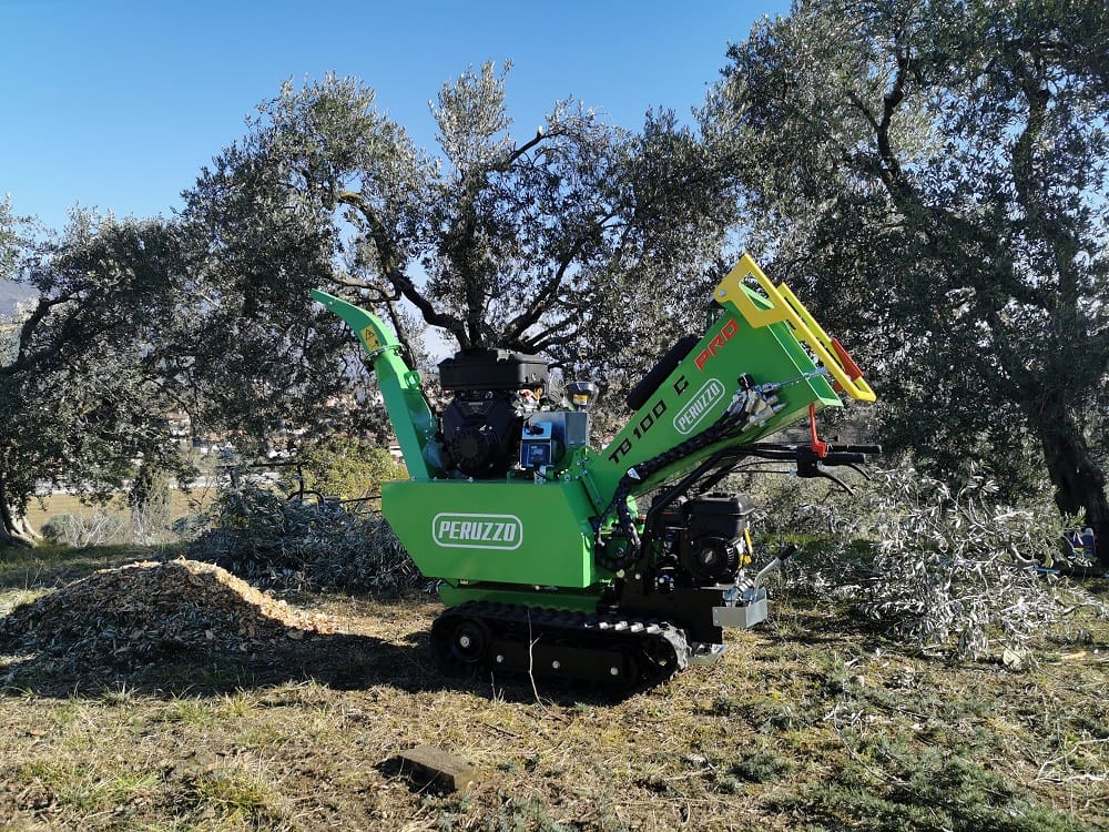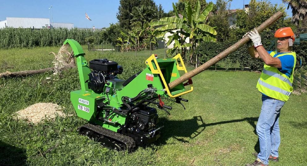 La déchiqueteuse à tambour TB100-C PRO est équipée d’un rotor à 2 pales et d’un rouleau d’entraînement hydraulique, réglable en vitesse, avec des dents à haute adhérence, un système sans stress en standard et grâce à la grande trémie inclinée, la machine traite les branches, les brindilles et les boutures avec une grande facilité. La force centrifuge créée par le rotor expulse le matériau finement broyé, le projetant hors de la décharge (pivotant et réglable en hauteur) à une distance d’environ 3/7 mètres (selon le produit), et permettant un chargement facile en présence de conteneurs spéciaux ou sur remorques. Les dimensions hors tout moyennes et les chenilles (entraînées par un moteur indépendant de 5 CV) lui permettent d’être utilisé même dans des zones étroites ou des terrasses, ainsi que de charger facilement sur des camionnettes basculantes, grâce à l’aide de rampes spéciales. Produite dans les usines Peruzzo, cette déchiqueteuse est propulsée par un moteur à combustion interne de 23 CV et peut devenir, en quelques étapes simples, une brouette agile (accessoire séparé) utile pour le transport de bois et d’autres matériaux.