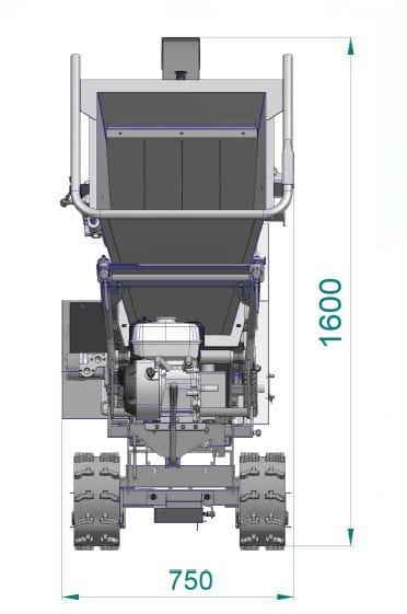 La taille moyenne et les chenilles déplacées par un moteur indépendant de 5 CV lui permettent d’être utilisé même dans des zones étroites ou des terrasses,