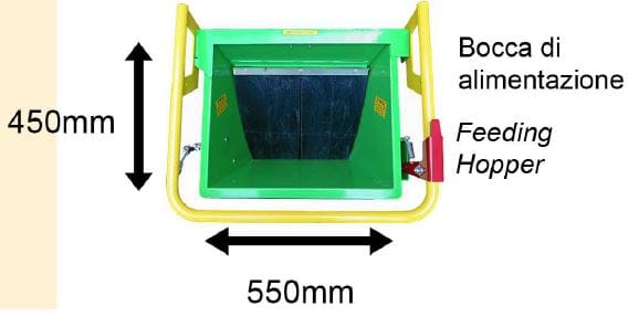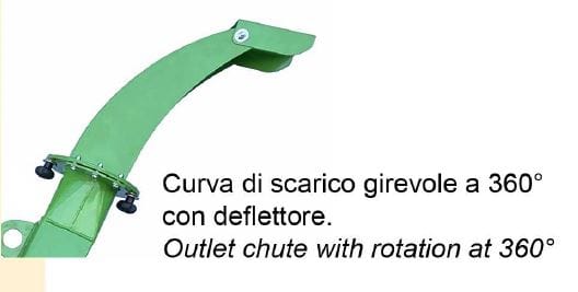 La force centrifuge créée par l’unité de coupe à tambour ouvert expulse le matériau broyé de manière fine (de 1 à 3 cm), en le projetant hors de la décharge (pivotant et réglable en hauteur) à une distance d’environ 3/7 m (selon le produit) et à une hauteur de 170 cm
