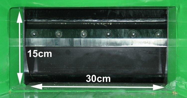 Tambour de coupe (300 mm x 150 mm) composé de deux lames réversibles à haute résistance auxquelles est ensuite ajoutée une contre-lame également en acier trempé