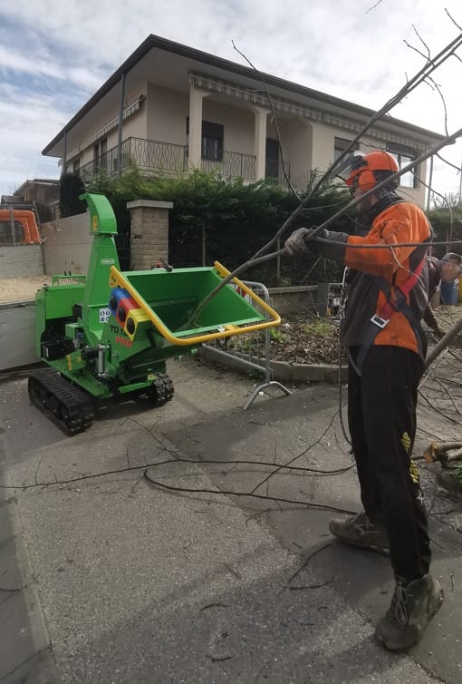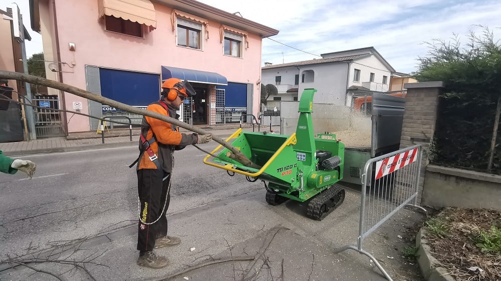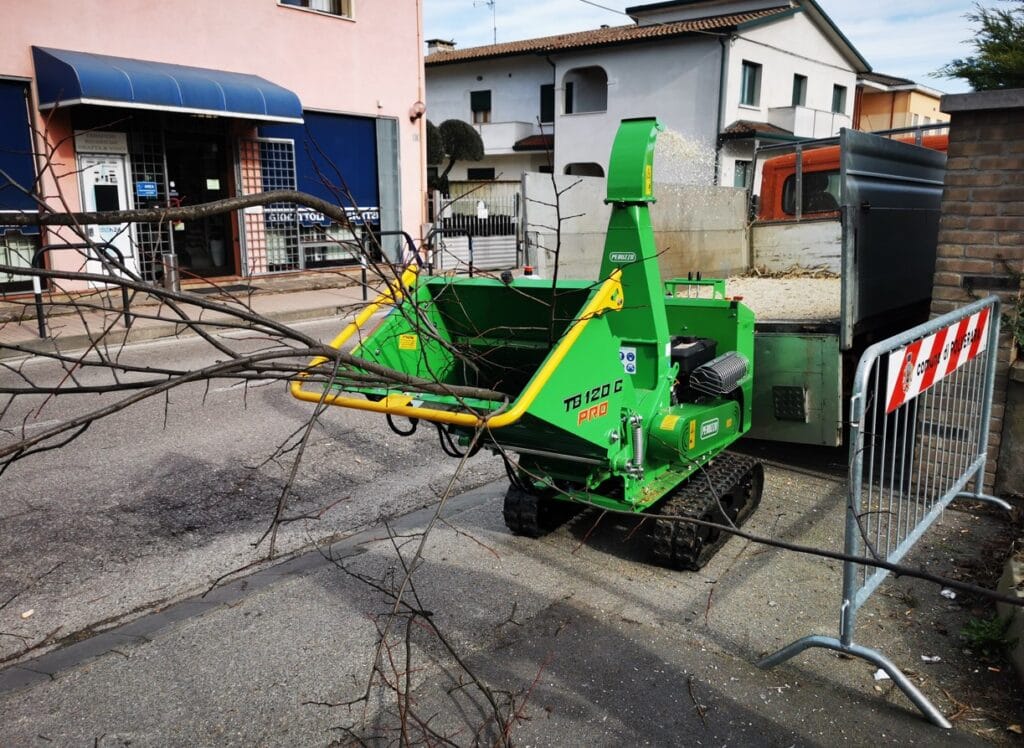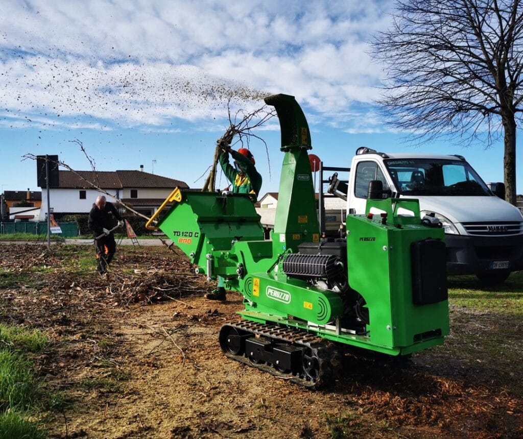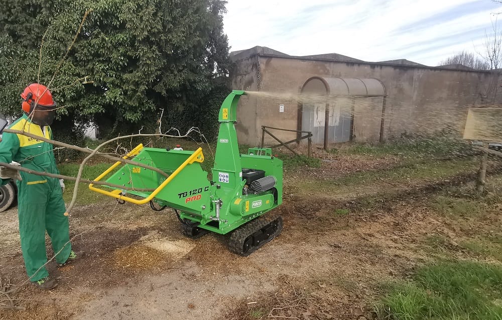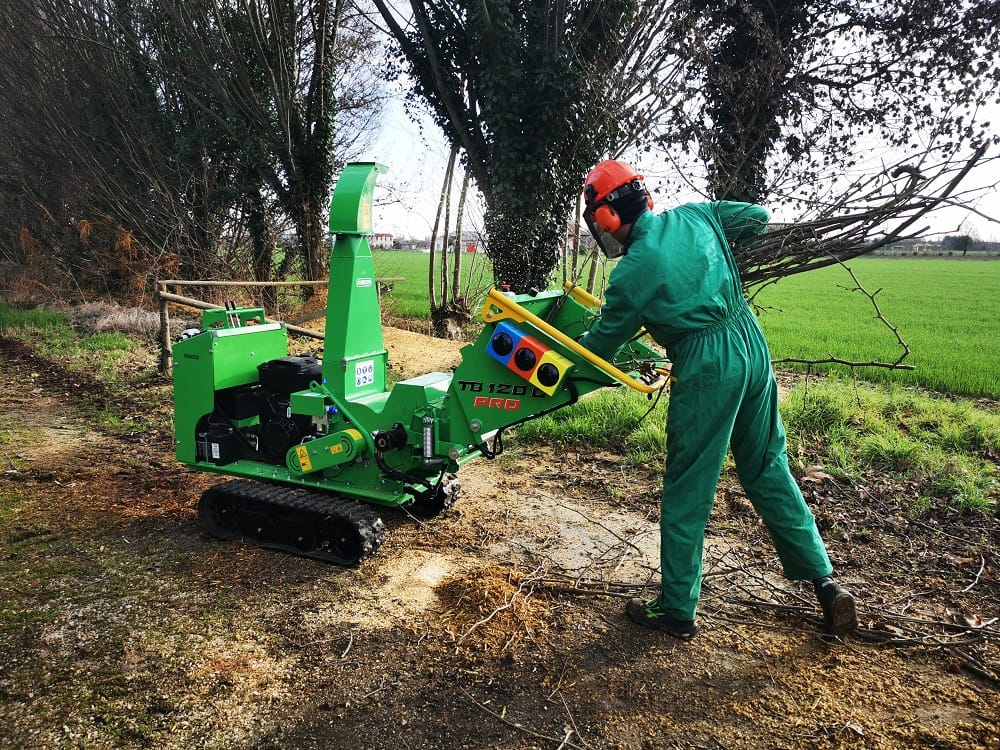 Le broyeur/broyeur TB120-C PRO est utilisé pour broyer tous les types de branches, y compris fibreuses, pour déchiqueter des branches jusqu’à 12 cm Ø, avec un rendement horaire de 3 à 10 m³/heure. Cette déchiqueteuse est équipée d’un rouleau hydraulique régulé par un système NO-stress qui facilite le glissement du produit à couper vers le tambour de coupe, qui se compose à son tour de deux lames trempées réversibles à double tranchant et contre-lame. Idéal pour réduire la taille avec beaucoup de branches et de feuillage.