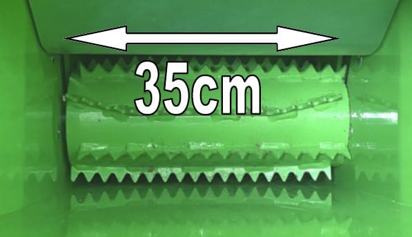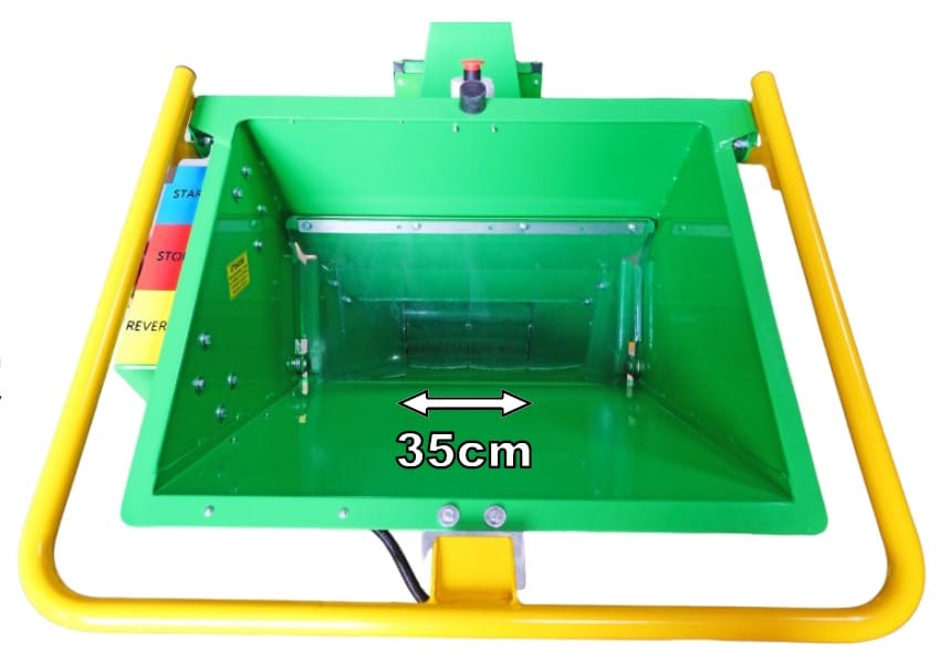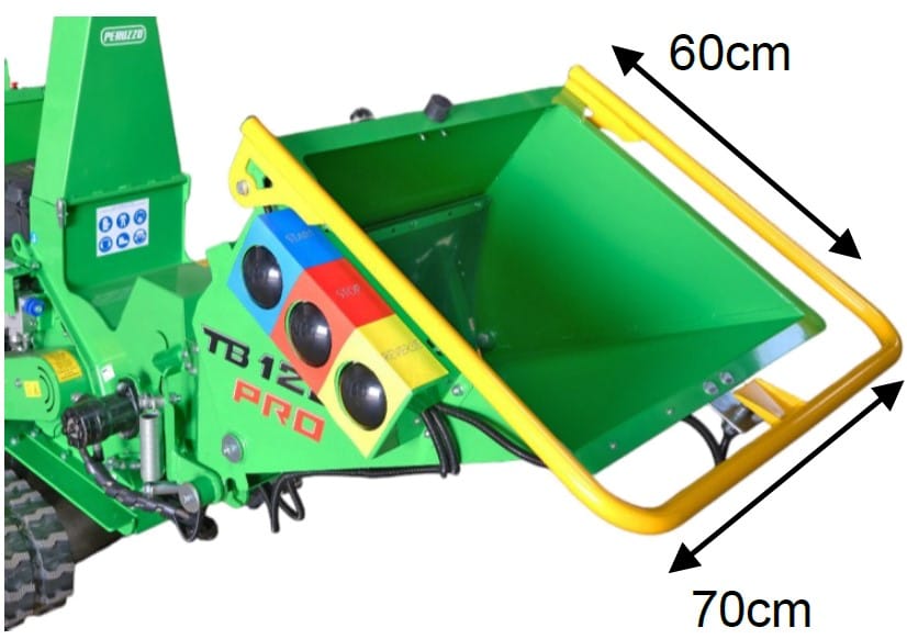 Grande trémie de chargement qui facilite l’insertion des branches les plus feuillues, comme les oliviers