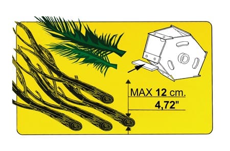 – Branches d’arbres et d’arbustes, généralement avec un diamètre spécifié par le fabricant du broyeur.