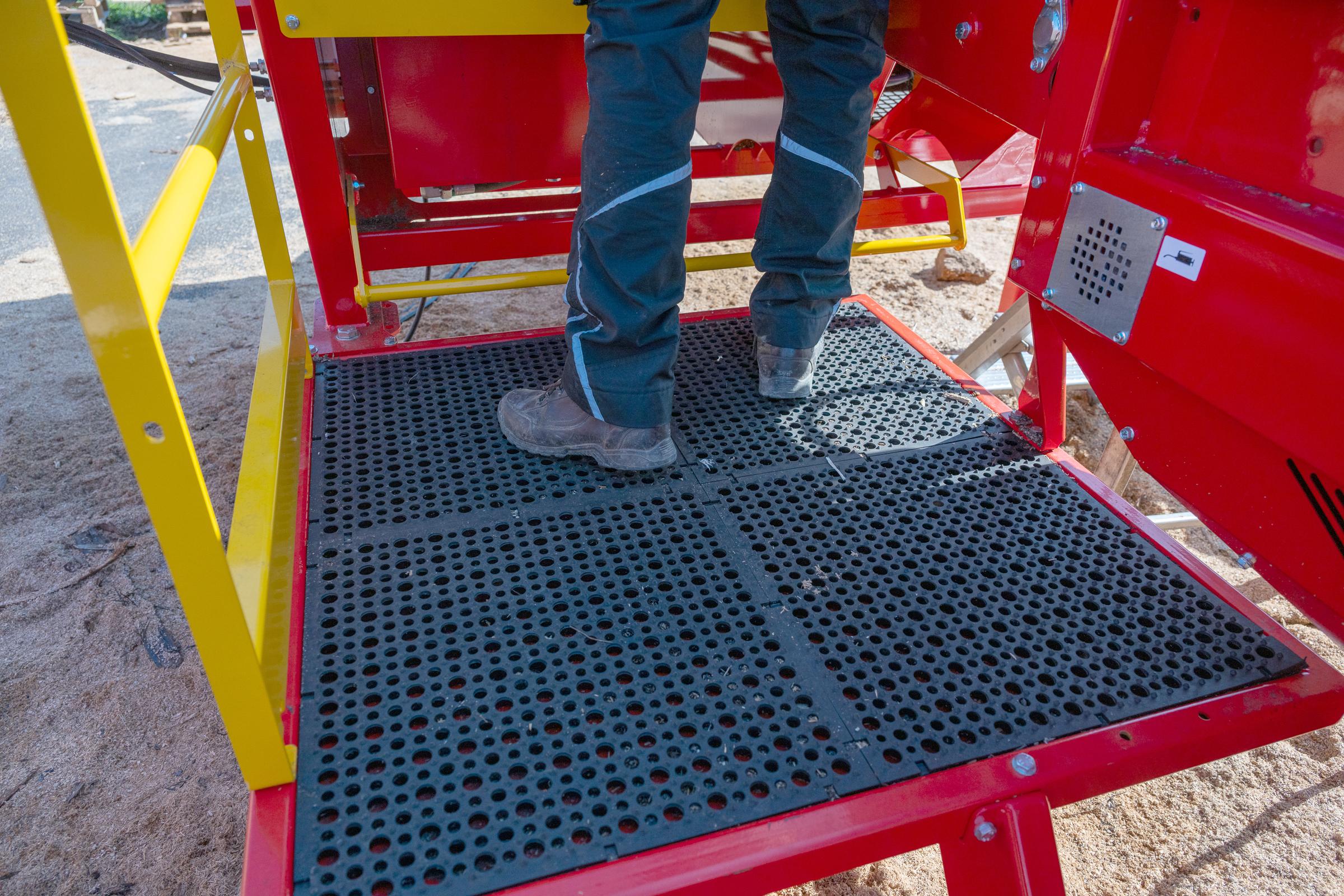 • En option, possibilité d’ajouter un tapis d’évacuation de 4, 5 ou 6 m orientable hydrauliquement de +/- 90° et réglable en hauteur de 2,50 à 3,65 m.