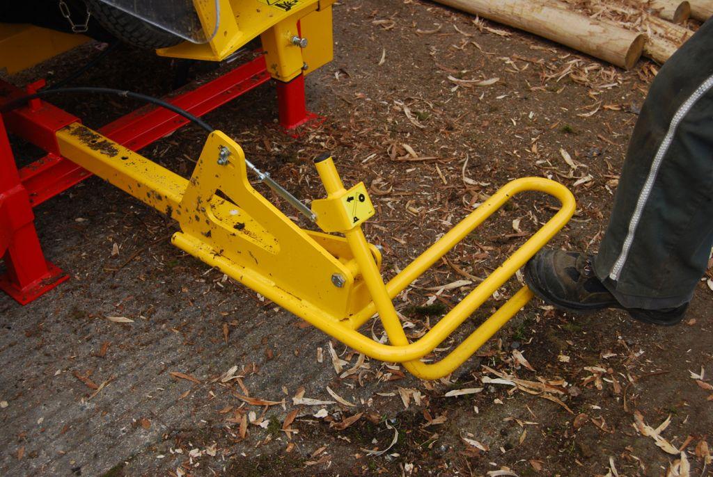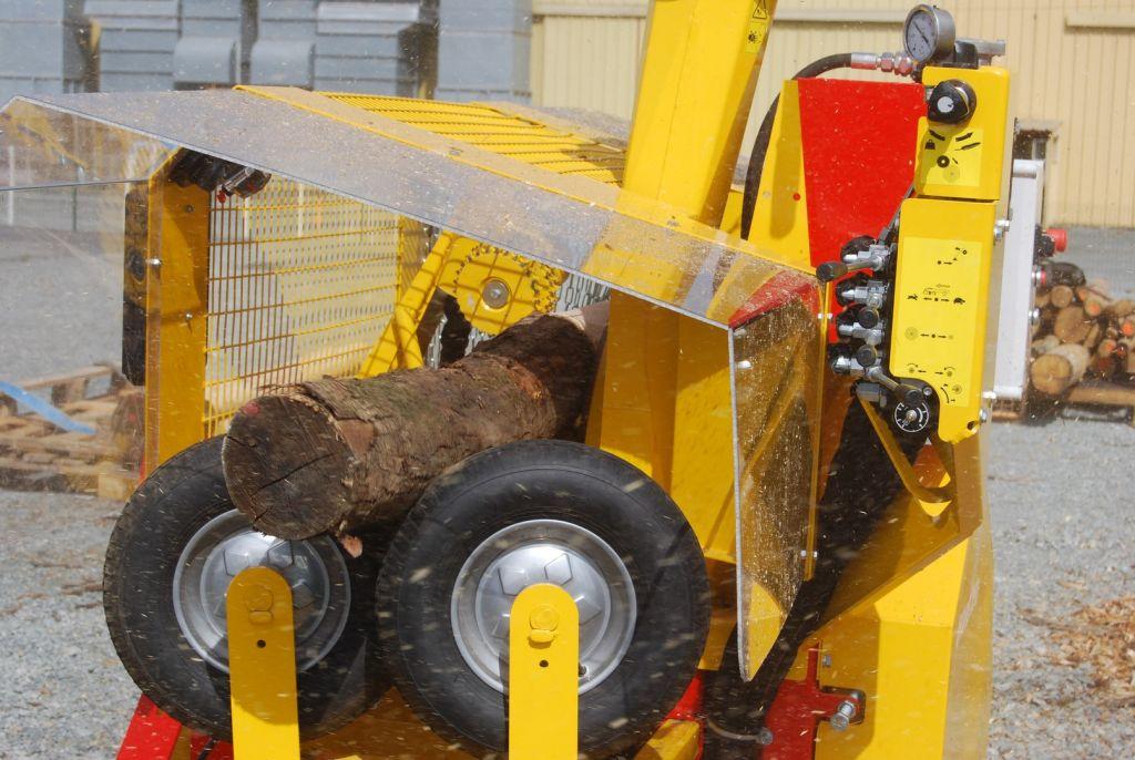- Maintien du bois à l’entrée et à la sortie de la machine par deux roues pneumatiques positionnées en V.