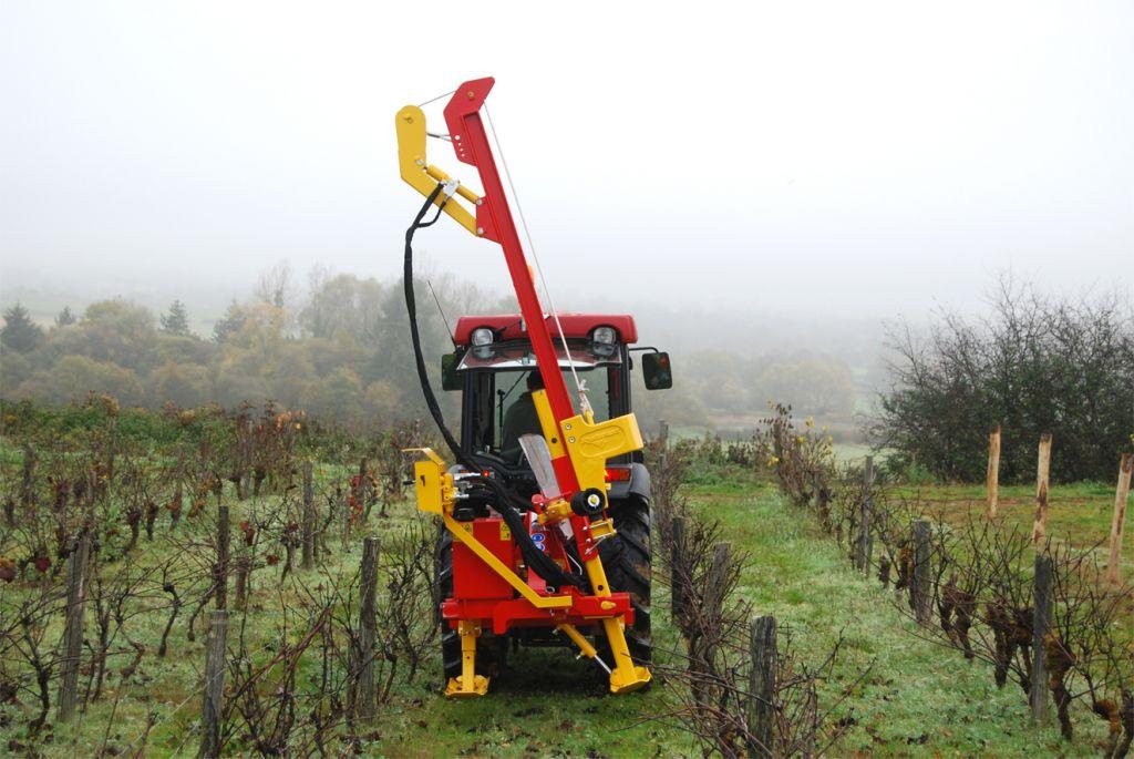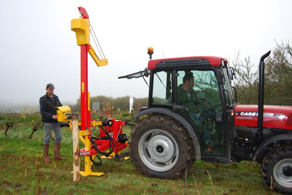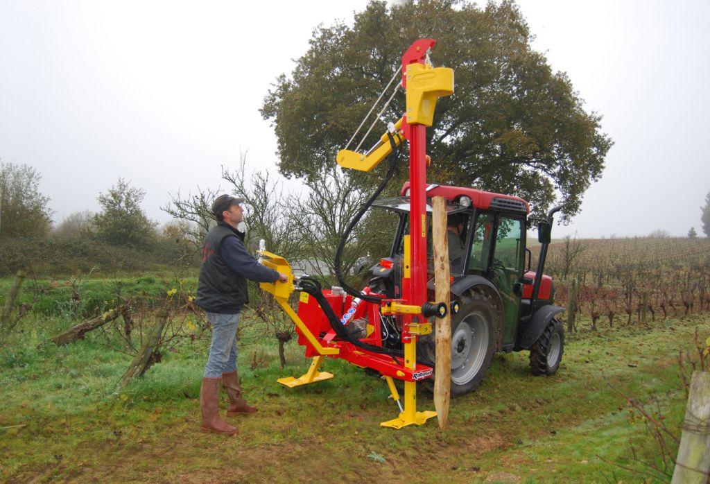 Pour répondre aux besoins des viticulteurs à la recherche d’un enfonce-pieux simple, RABAUD a décliné son enfonce-pieux à Mât ELEVEUR en version VITI.