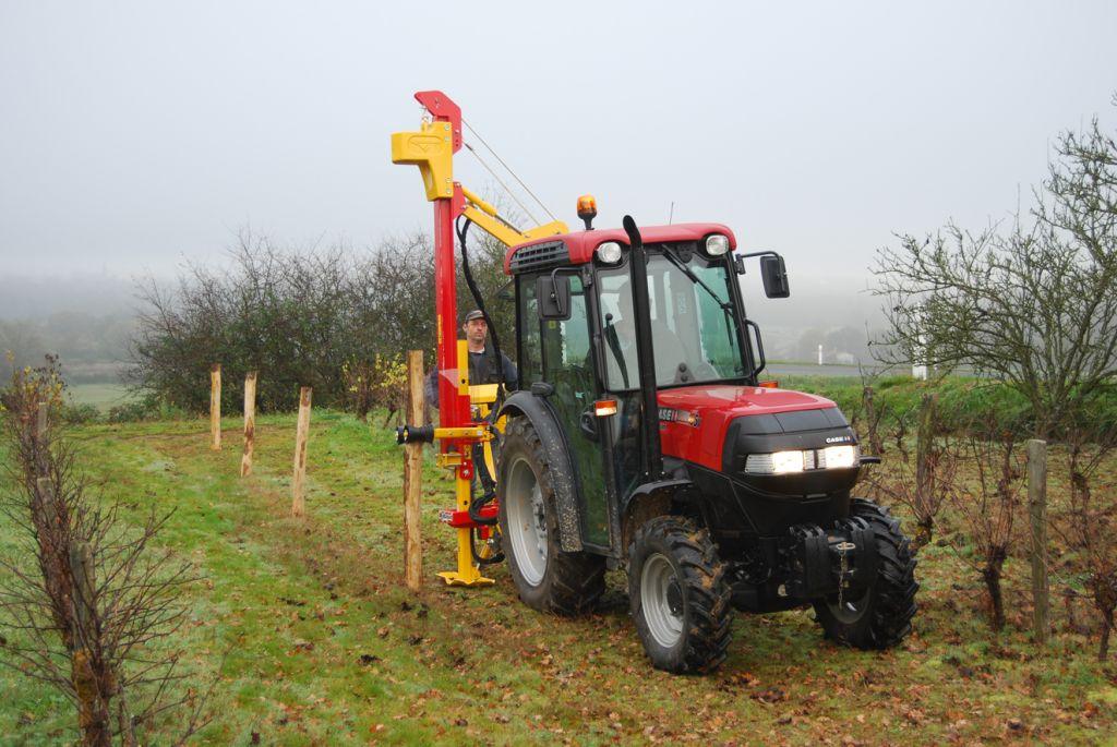 - Enfonce-pieux compact 0,95 m, idéal pour passer entre les rangs.