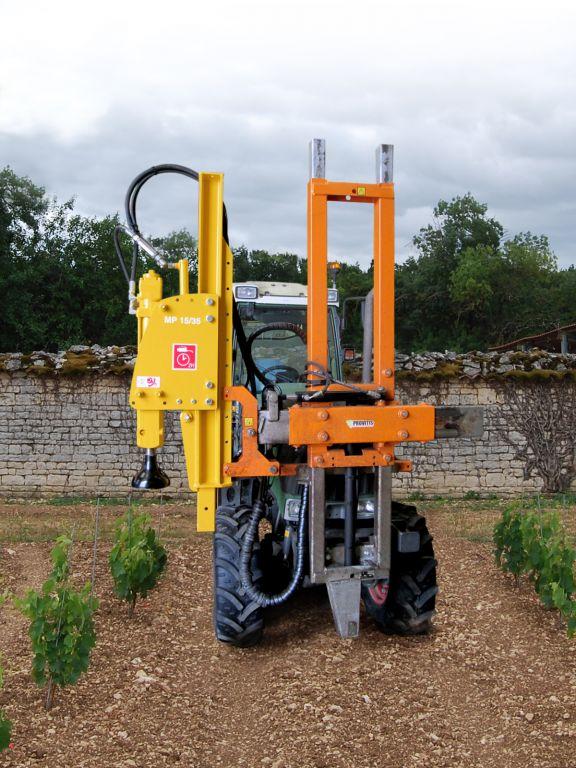 Enfonce-pieux par percussion sur machine à vendanger : VIBRESCOPIC sur MAV