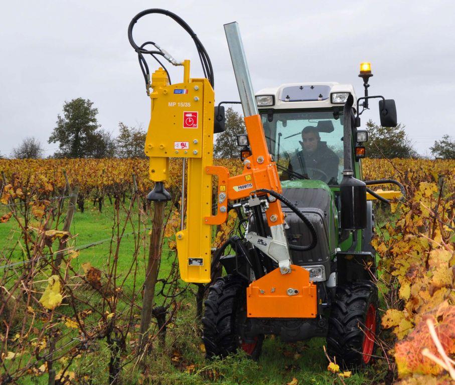 Ce choix d’adapter l’enfonce-pieux sur le porteur permet de limiter le nombre de matériels ou de la création ou l’entretien de vignobles.