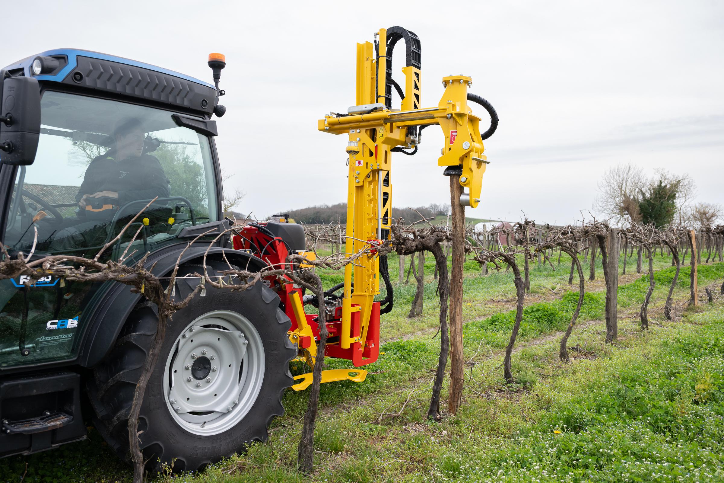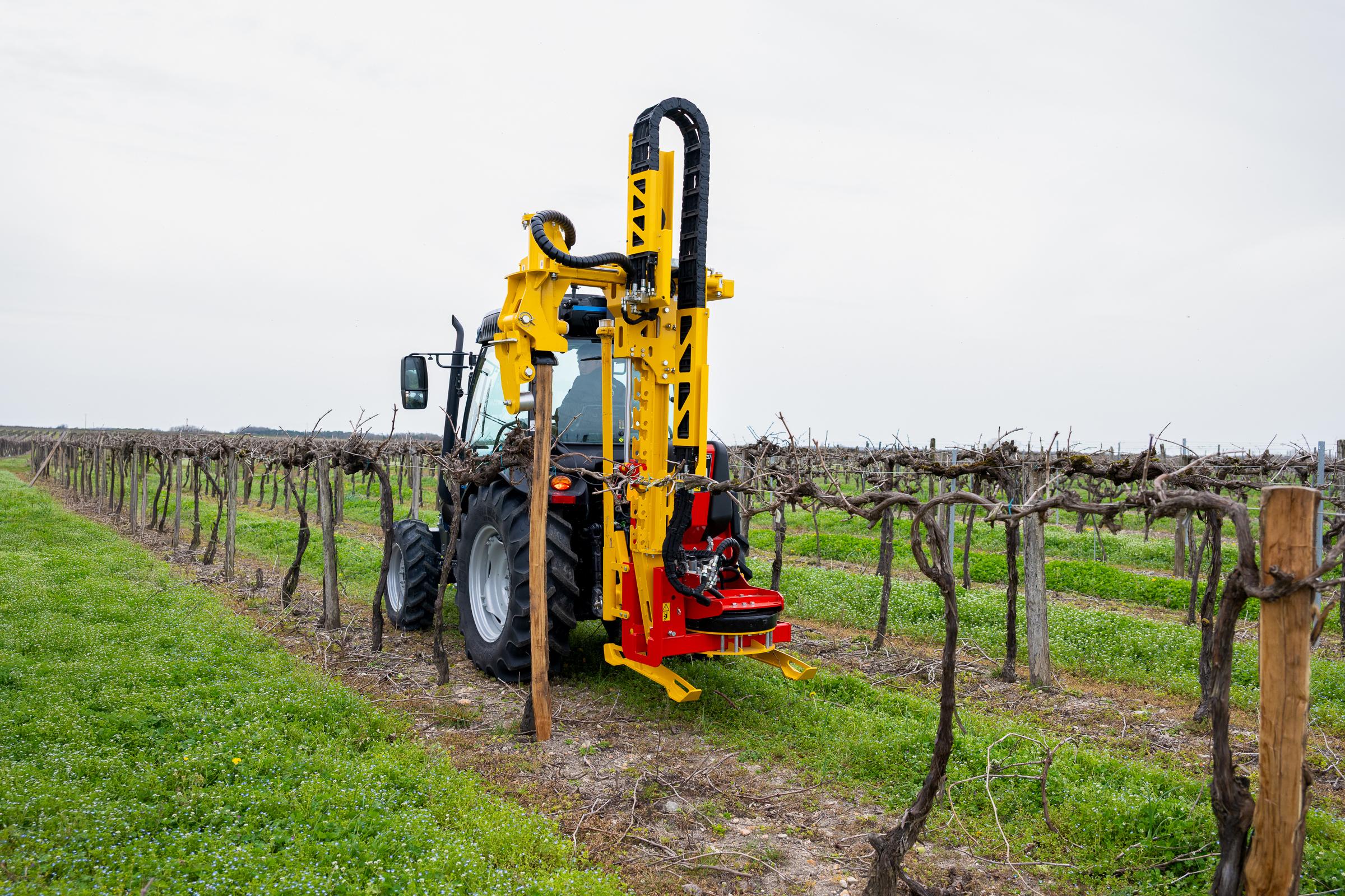 Enfonce-pieux à percussions pour la réalisation des travaux intensifs dans les vignobles.