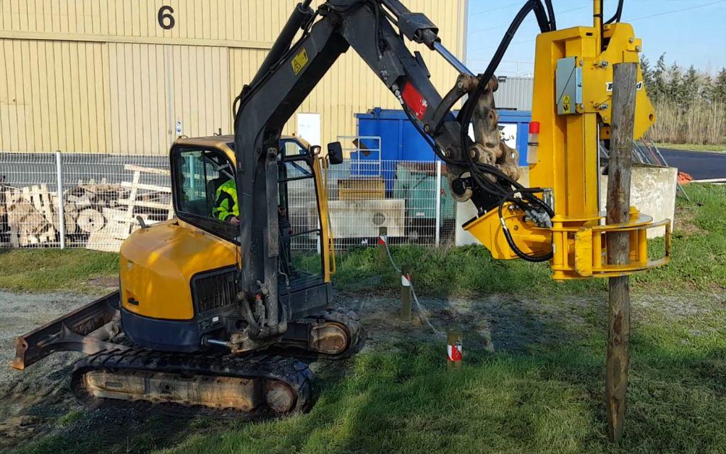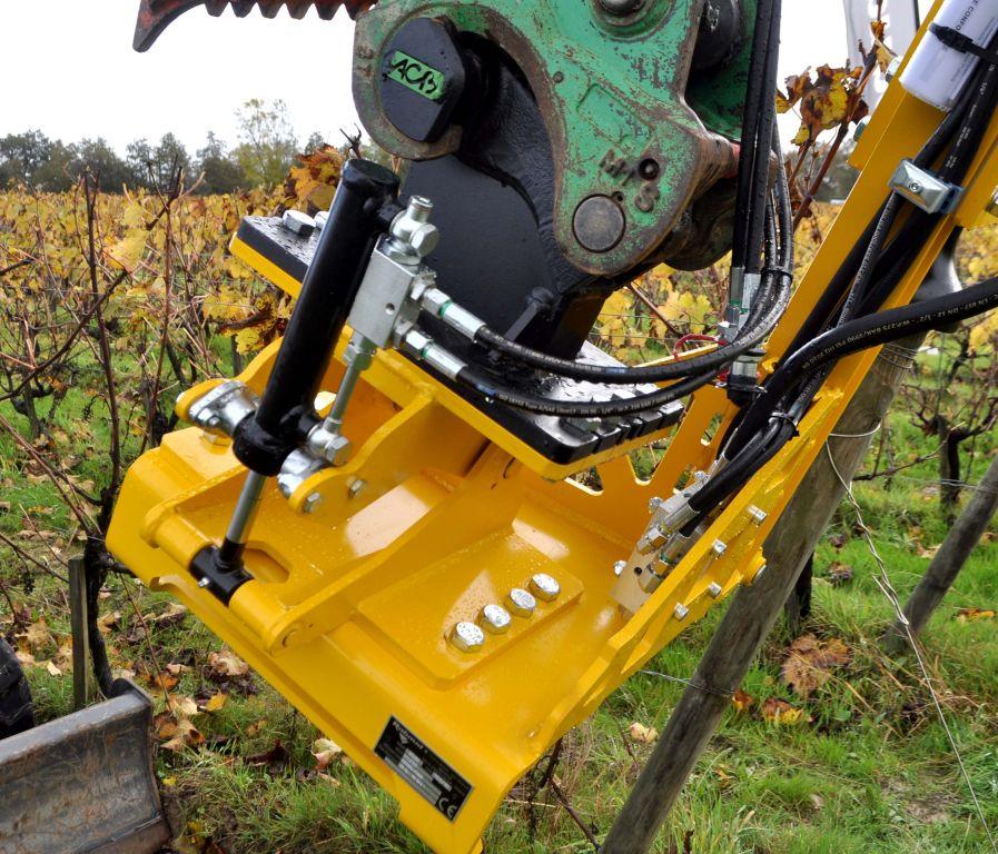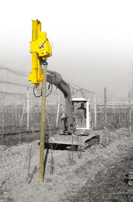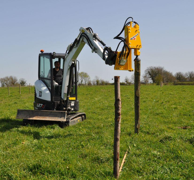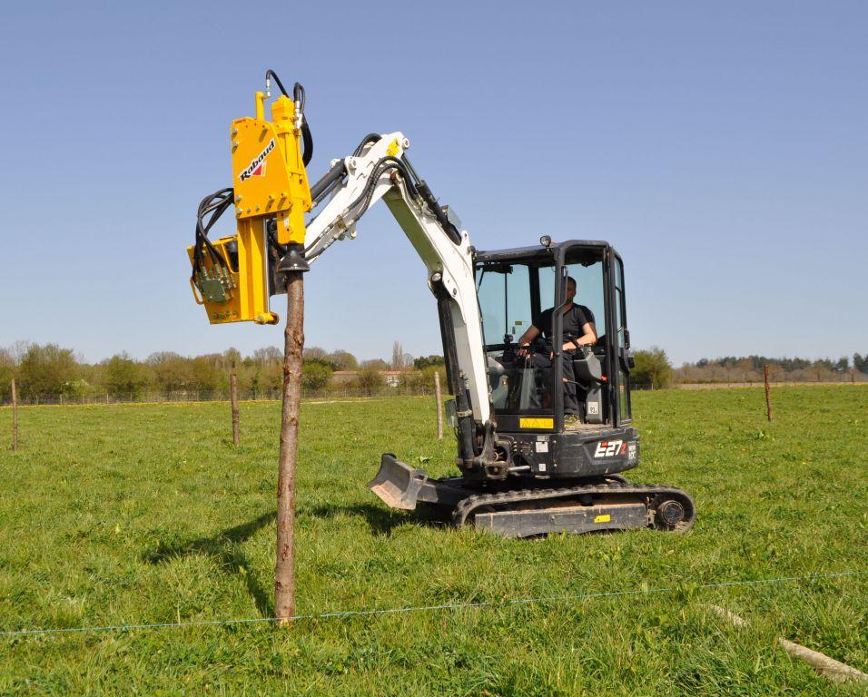 Cet enfonce-pieux sur mini-pelle a été conçu pour enfoncer des piquets bois ou métal dans le secteur agricole, il permet d’enfoncer des piquets de cloture, ou pour palisser les vignes, renforcer des berges, planter des tuteurs dans les vergers ou encore pour la mise en place de pieux d’ancrage des tentes, chapiteaux et autres structures éphémères.