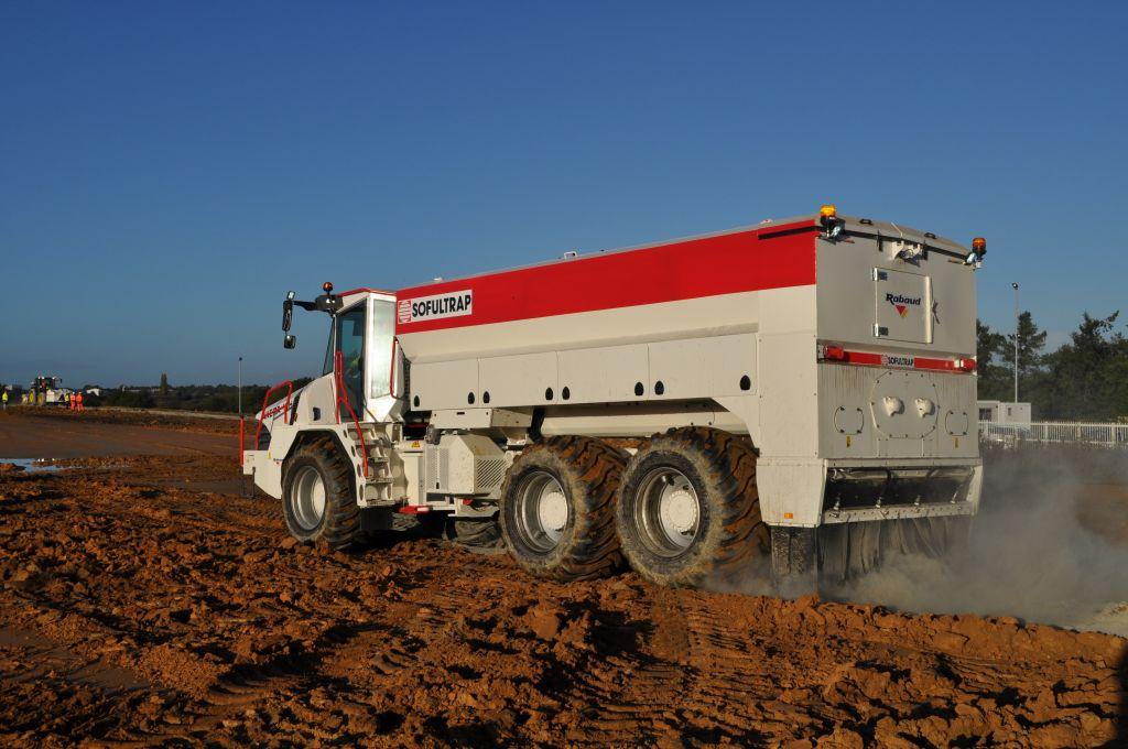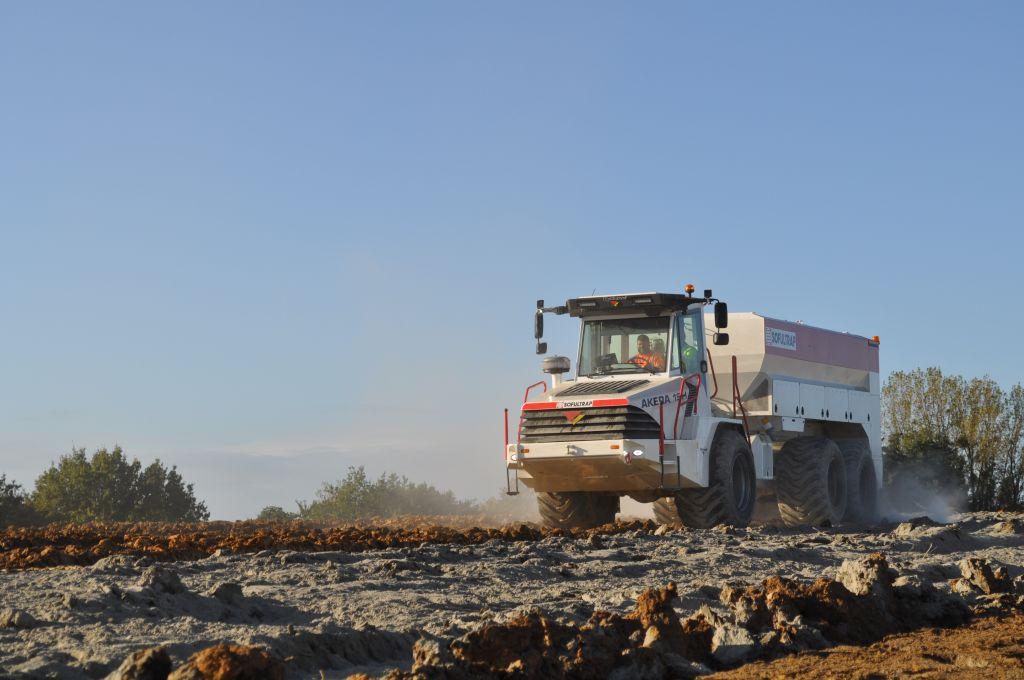 Le traitement de sol à la chaux vive consiste à mélanger le sol naturel avec de la chaux afin d’améliorer ses caractéristiques en diminuant très rapidement la teneur en eau et ainsi le rendre porteur et praticable. Pour parcourir facilement ces terrains difficiles, le châssis de l’AKERA est articulé et l’essieu tandem monté sur balanciers permet une prise en main rapide et facile. Grâce à des pneus «basse pression» extra large, il est possible de franchir les terrains les plus exigeants sans difficulté. Afin de répondre à la norme Stage 5, l’AKERA 19H est doté du nouveau moteur VOLVO PENTA TAD 883 VE de 320 CH plus économe en carburant (gain de 10 %). Sa transmission mécanique à 100% est la garantie d’une simplicité et d’une fiabilité à toute épreuve.