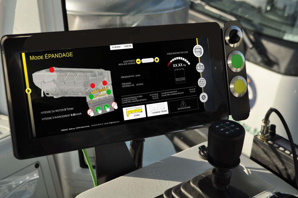 L’intérieur de la cabine offre une meilleure visibilité grâce à ses 7 vitres en verre sécurité teinté permettant une vision à 360°. L’ensemble des fonctions de l’épandeur est regroupé sur un nouveau terminal de commande avec écran tactile de 12 pouces et commandes à boutons. Côté épandage, l’AKERA 19H confère une grande capacité de rendement. En effet l’AKERA 19H est en mesure de délivrer son dosage de 3 à 59 kg/m² à une vitesse allant de 2,3 à 6 km/h. Son système de dosage asservi à l’avancement avec système O-CONTROL lui vaut d’être le seul épandeur du marché à être certifié pour sa précision d’épandage.