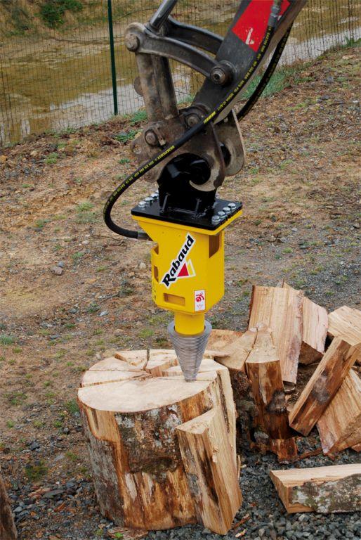 Fendeuse de bûches à vis. Pour un fendage avec des mini-pelles jusqu’à 14 tonnes.