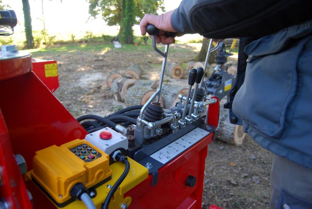 Diamètre des billons : jusqu’à 80 cm. - Commandes électro-hydrauliques par radiocommande ou depuis une boite à boutons située sur le récepteur de la fendeuse.
