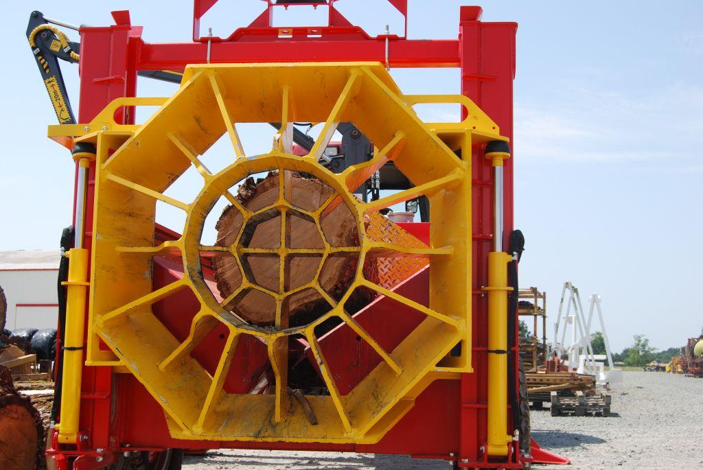 Vous avez également la possibilité d’utiliser une grue forestière XYLOGRUE en option pour faciliter le chargement de la machine. Cette grue dépose la grume sur un canal en V, ce qui permet de la positionner au centre et évite qu’elle ne se bloque en travers.