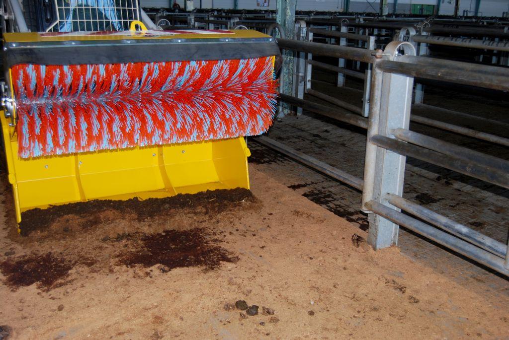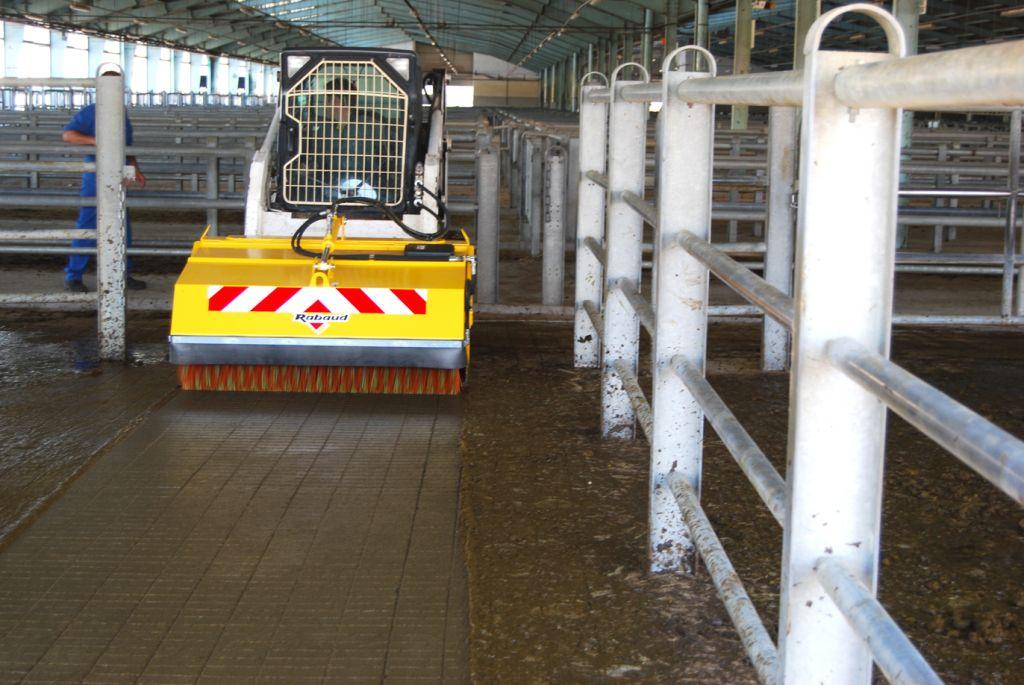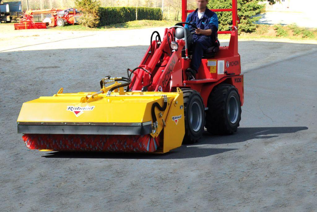 Son fonctionnement est simple. La marche avant avec balai relevé permet au godet de venir racler le sol, soit pour charger de la matière, soit pour dégrossir les gros détritus. Idéal par exemple pour racler les surfaces encrassées (fumier, terre mouillée, graviers…).