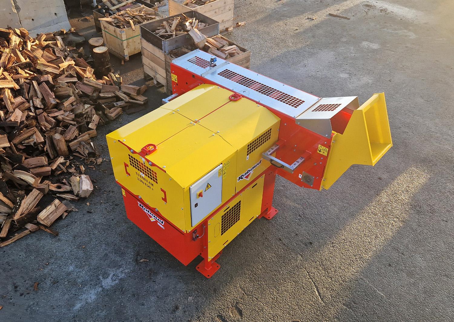 La machine à bûchettes : XYLOFLAM 330/450+ permet de produire de petites bûchettes d’une section de 20 mm à l’infini.