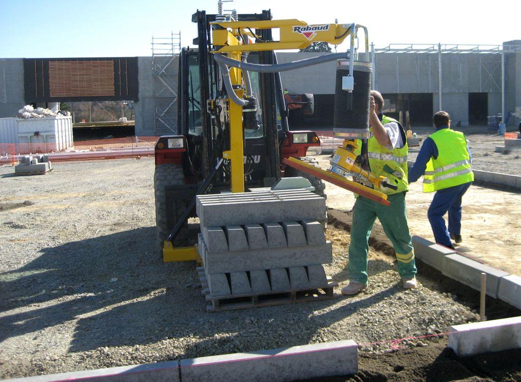 Le dispositif de pose de bordures BORD’AIR par aspiration d’air s’adapte sur les fourches d’une variété d’engins hydrauliques tels que les télescopiques, chariots élévateurs ou encore chargeurs. Grâce à cette particularité, déplacez simultanément l’engin et la palette de matériaux au plus près de votre zone de travail. En réduisant ainsi la manutention, vous gagnez en temps et en efficacité sur tous vos chantiers de construction, d’aménagement paysager ou encore de voirie.
