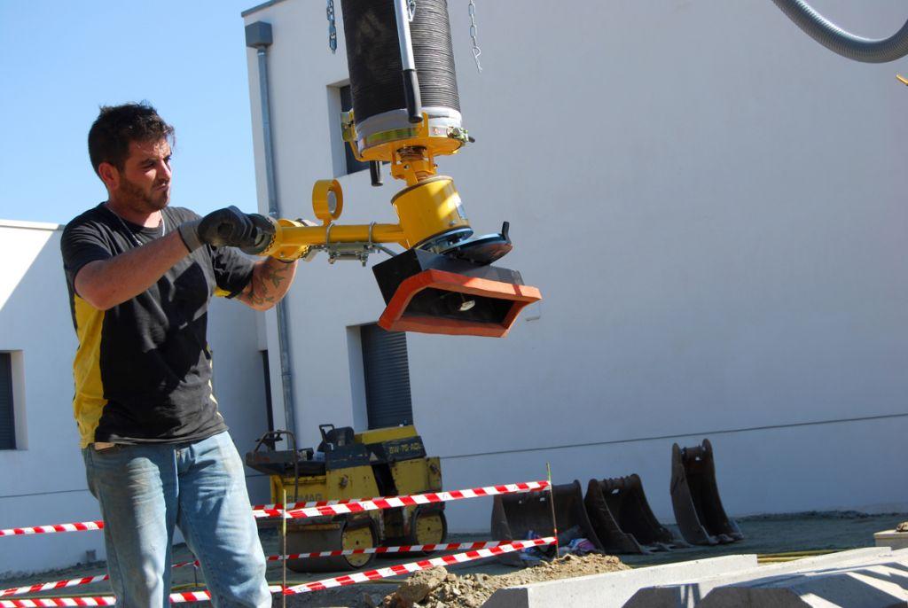 Simple de fonctionnement, cet outil de manutention permet de soulever tous les types de bordures lisses jusqu’à 160 kg en béton ou granit à faible granulométrie grâce à un système d’aspiration d’air très puissant permettant à la bordure de se coller sur la ventouse.
