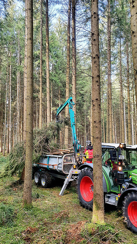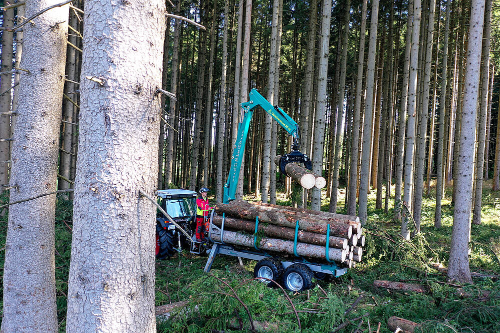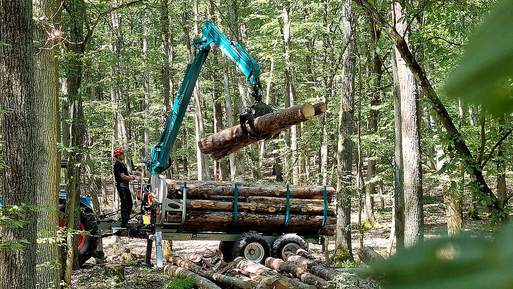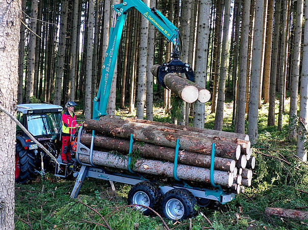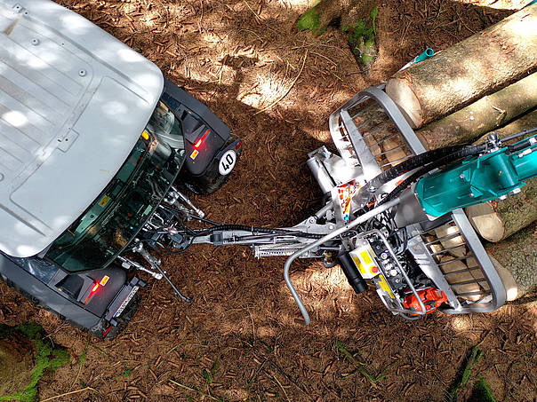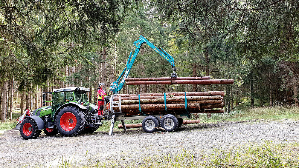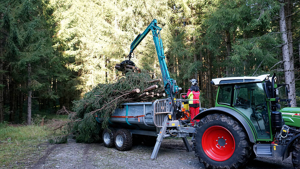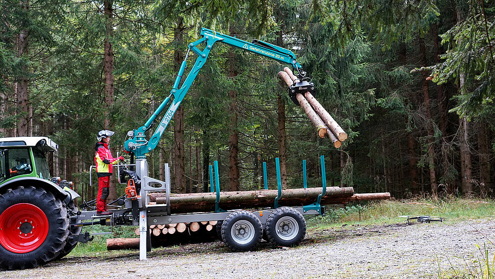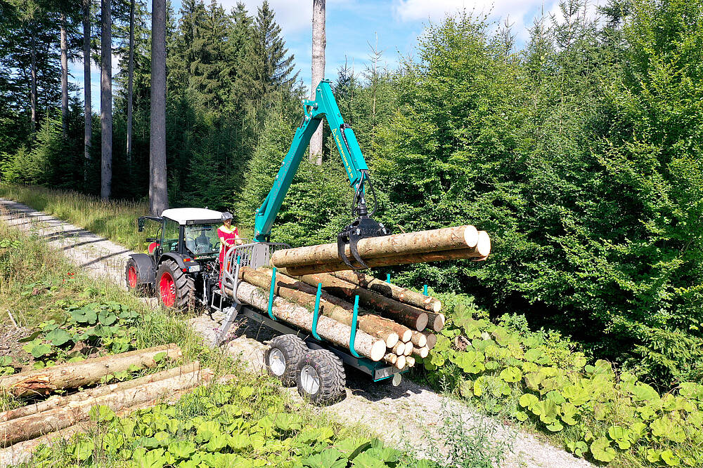 Pour les tâches plus importantes en forêt, Pfanzelt présente en 2022 le nouveau modèle S8. Il dispose d’une grue plus longue, d’une force de levage plus élevée et d’un volume  de chargement plus important.