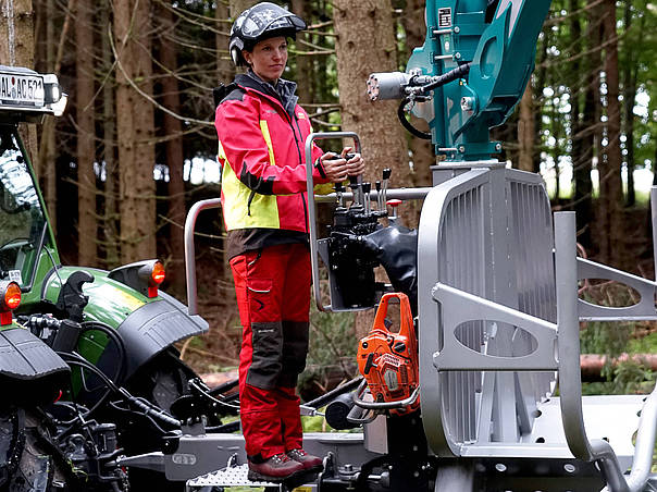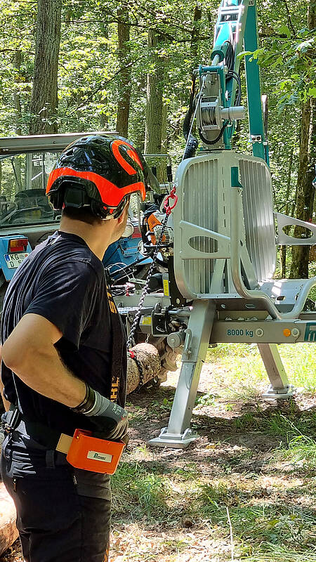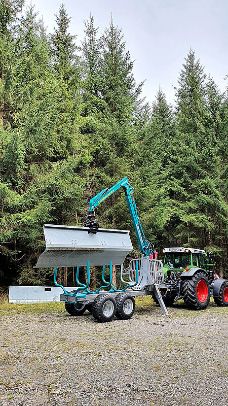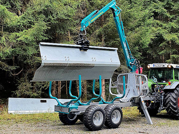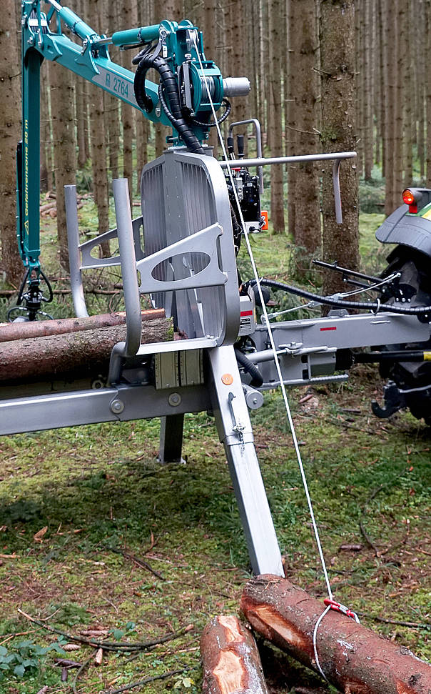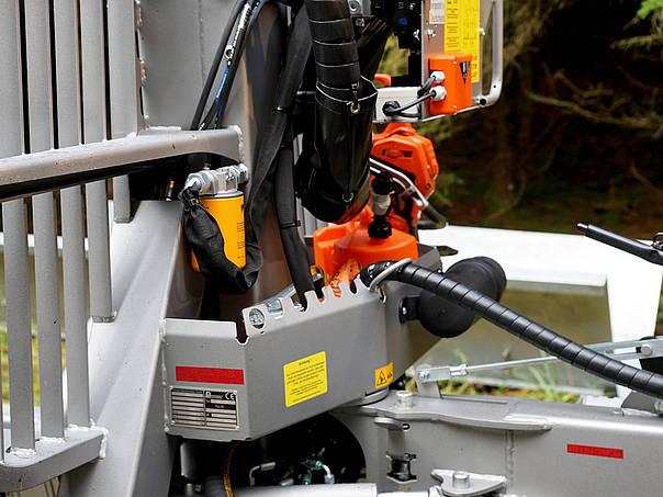 • Accessoires pour les professionnels de la forêt : différents systèmes de freinage, bac à déchets de coupe, treuil de grue