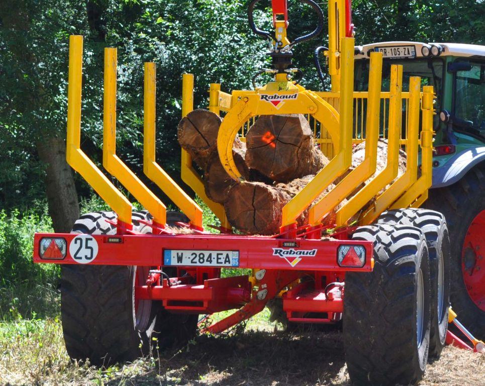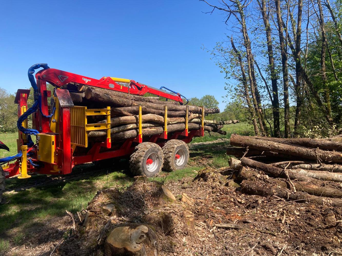 Remorques forestières bipoutres d’un PTAC de 15 ou 18 tonnes.