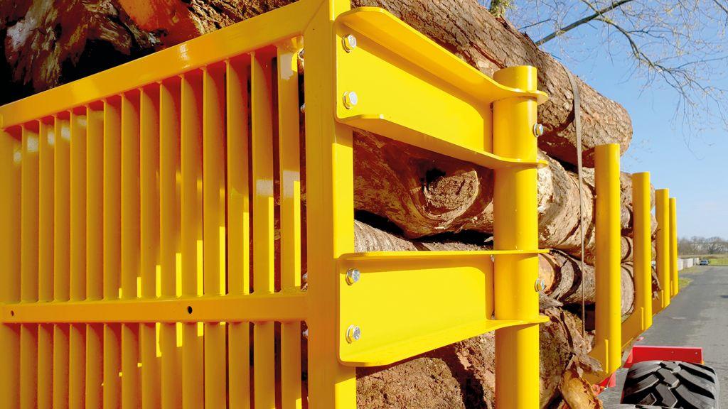- Grille de protection en acier de forte section pour bien ranger le bois dans la remorque en toute sécurité.