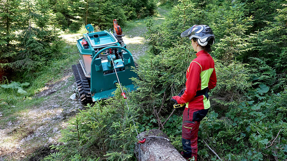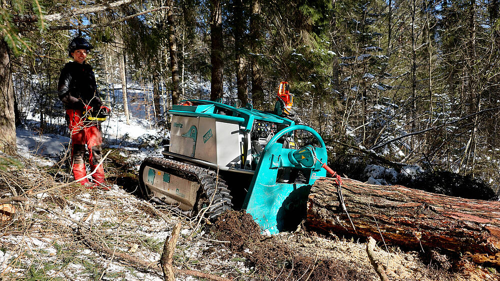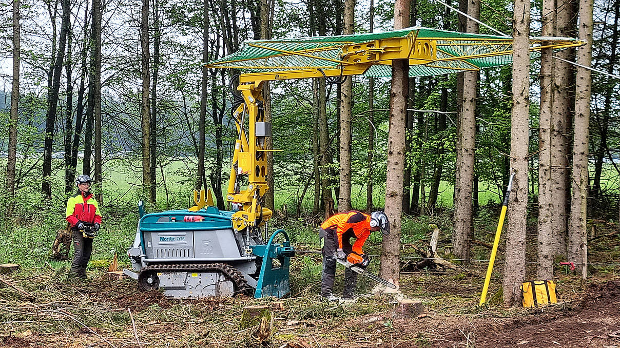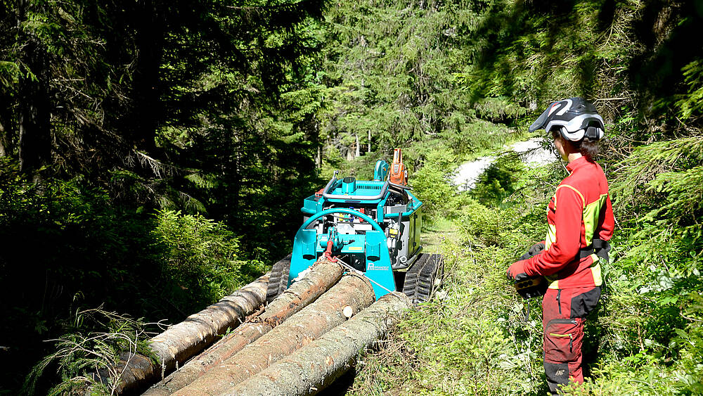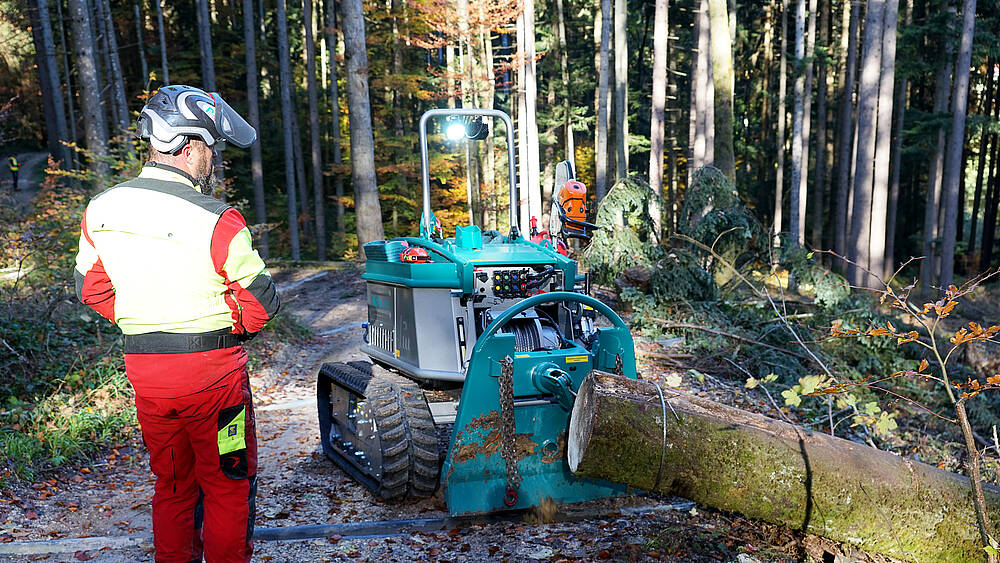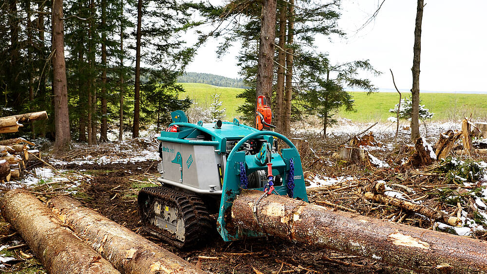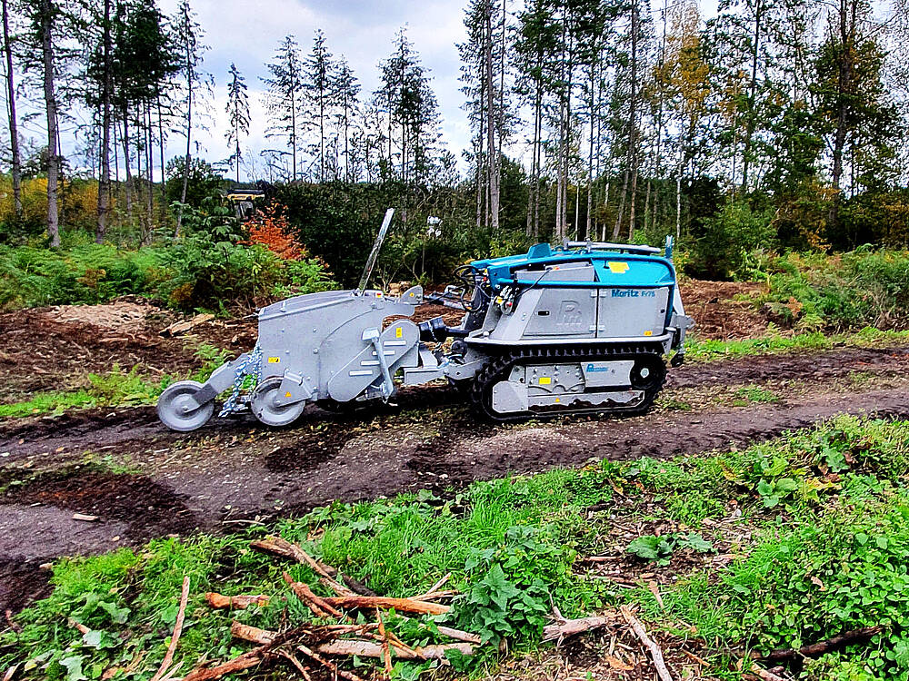 Si les distances dans les ruelles sont trop grandes, une protection accrue du sol est nécessaire en raison des conditions de sol exigeantes ou si les terrains ne peuvent pas être conduits avec de grandes machines forestières pour l’exploitation forestière pour d’autres raisons, alors des chenilles sont utilisées. La nouvelle série de chenille forestière Moritz impressionne par une force de traction du treuil  pouvant atteindre 7,2 t et une faible pression au sol.