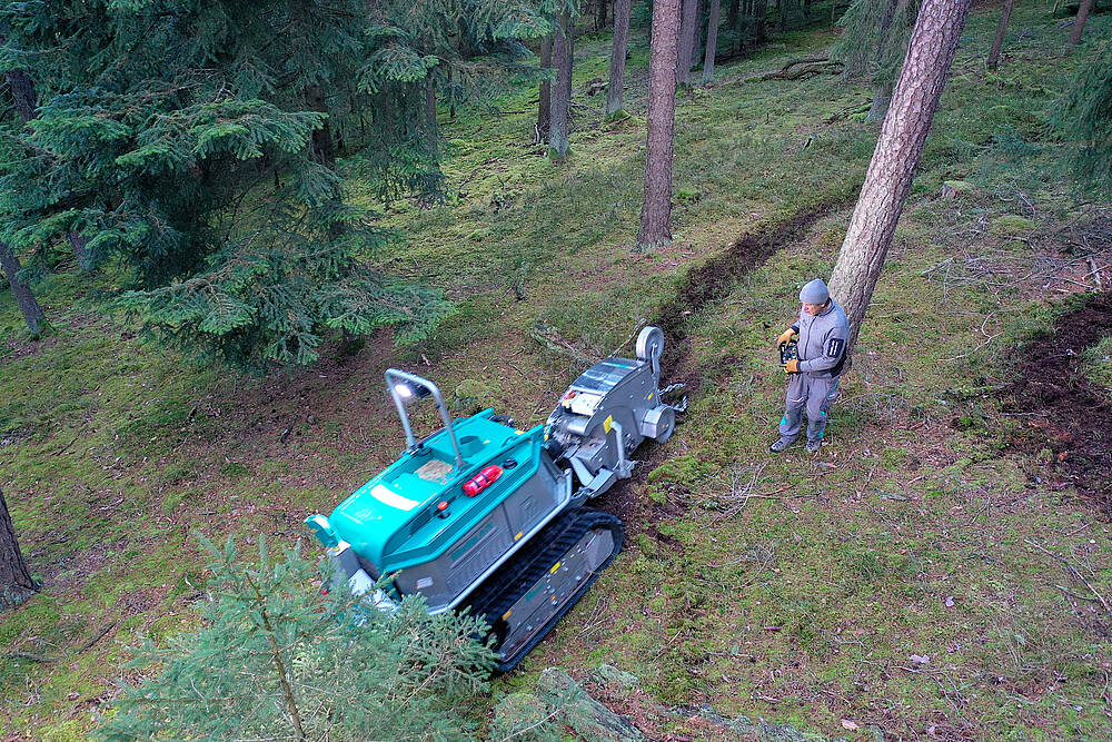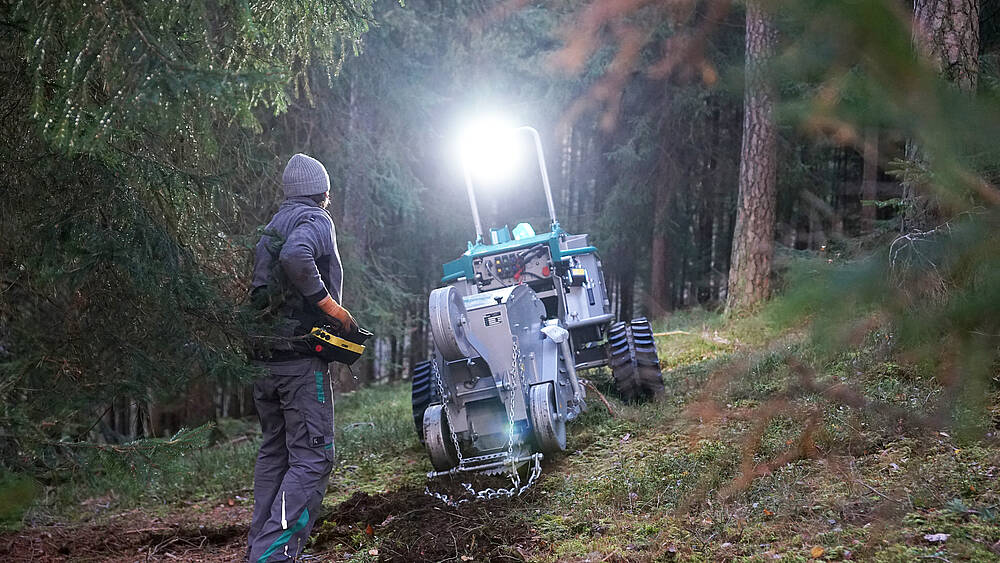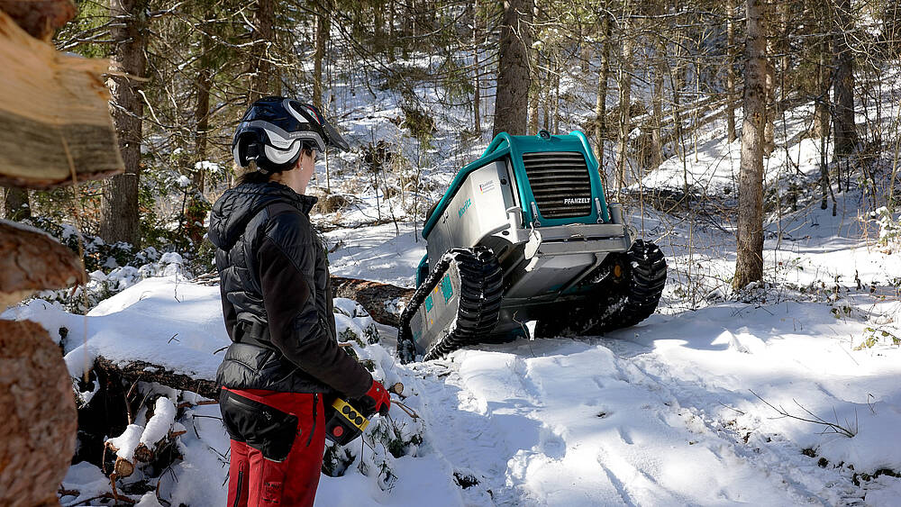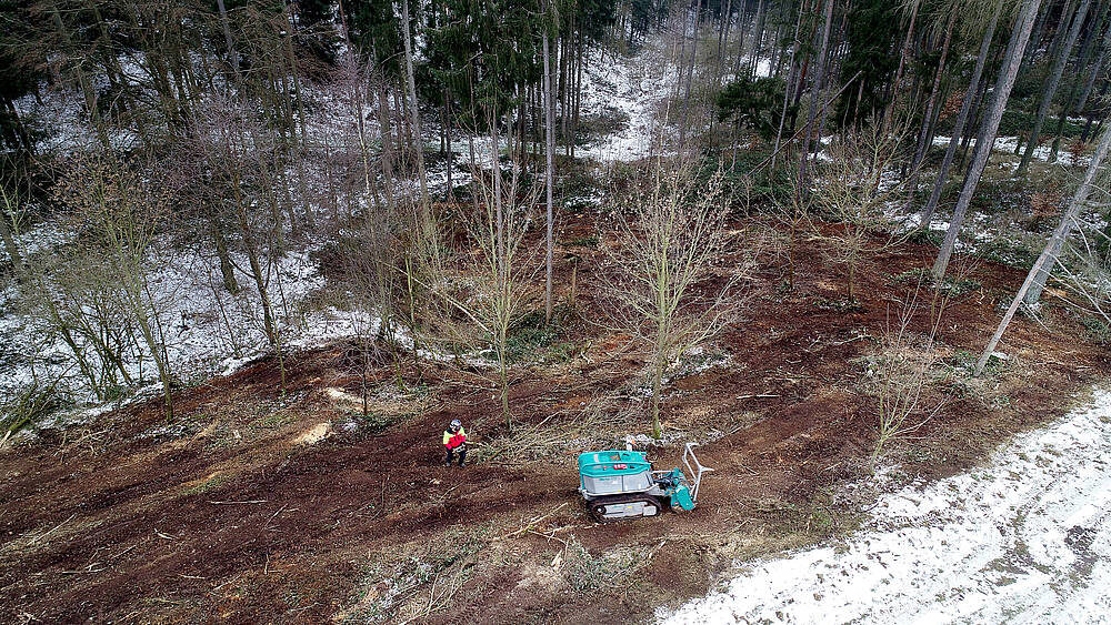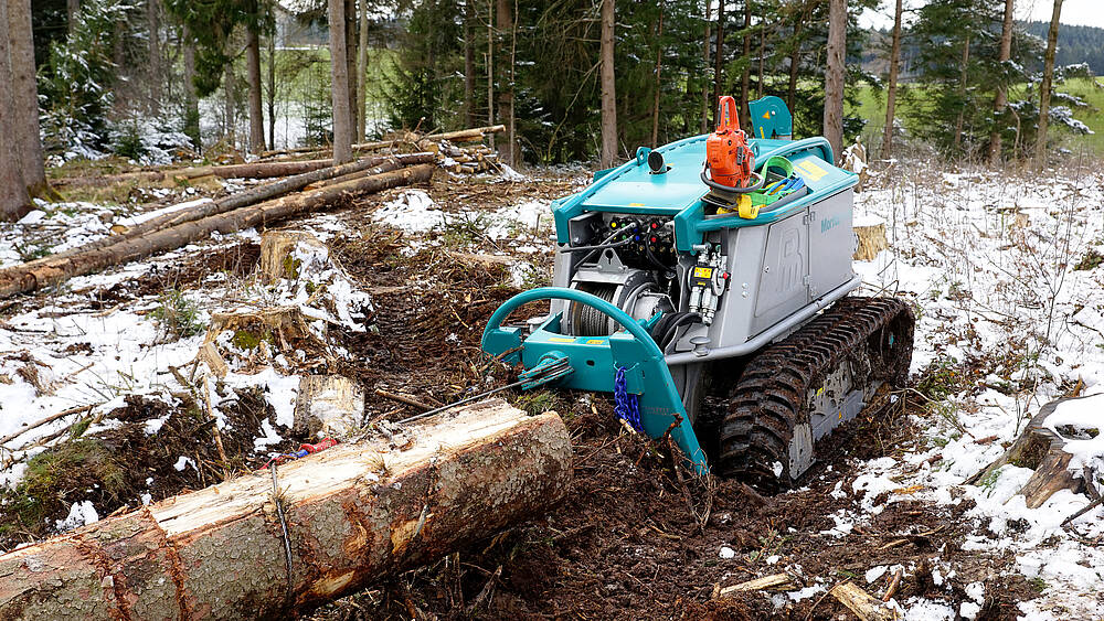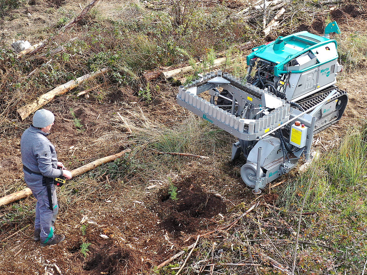 Si les distances dans les ruelles sont trop grandes, une protection accrue du sol est nécessaire en raison des conditions de sol exigeantes ou si les terrains ne peuvent pas être conduits avec de grandes machines forestières pour l’exploitation forestière pour d’autres raisons, alors des chenilles sont utilisées. La nouvelle série de chenille forestière Moritz impressionne par une force de traction du treuil  pouvant atteindre 7,2 t et une faible pression au sol.
