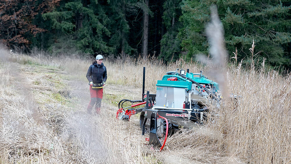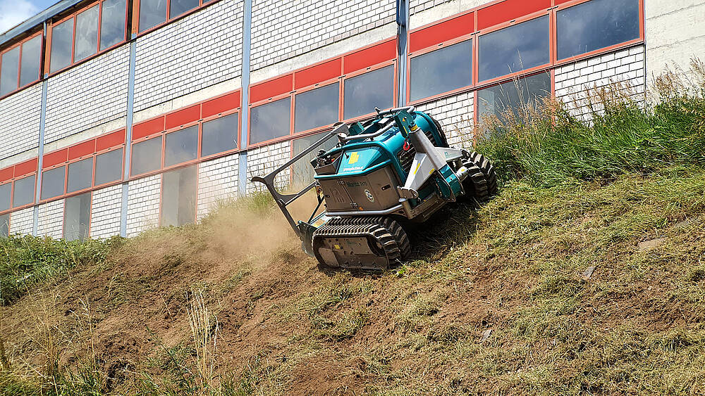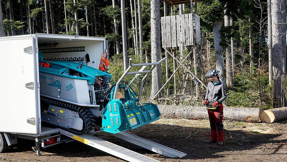 Dans le cadre des rapports de test forstARENA, nous avons fait mis un Moritz Fr75 à la disposition de l’entreprise d’entretien paysager A. Rauck pendant trois mois. Anni Rauck a testé ce porte-outils télécommandé et l’a comparé à son Moritz Fr50. Les performances du Moritz Fr75 et ses solutions pratiques ont totalement convaincu Anni.