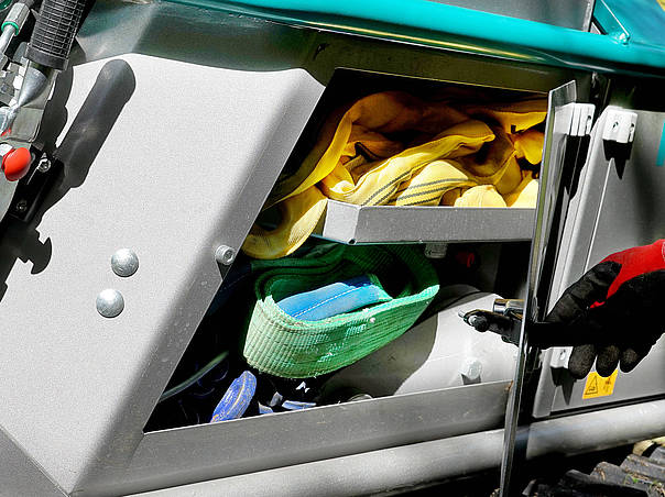 Toutes les fonctions du treuil chenillé peuvent être contrôlées et surveillées par radio via le tout nouveau panneau de contrôle ergonomique. Celui-ci permet de commander la transmission du véhicule et du treuil, mais aussi de modifier la vitesse du câble ou le régime moteur. Si le véhicule n’est pas utilisé pendant une courte période, le moteur peut être démarré ou arrêté à l’aide de la commande radio.