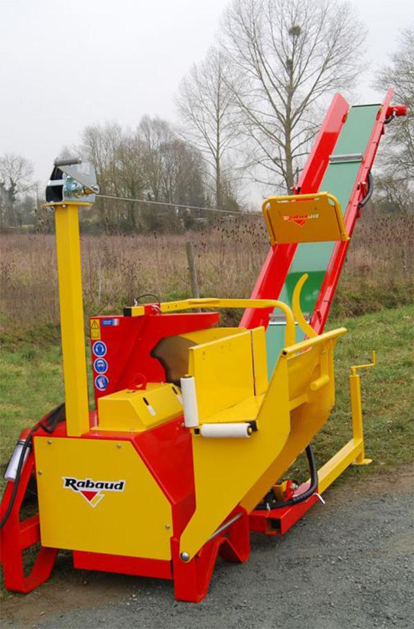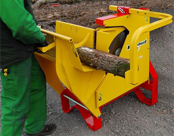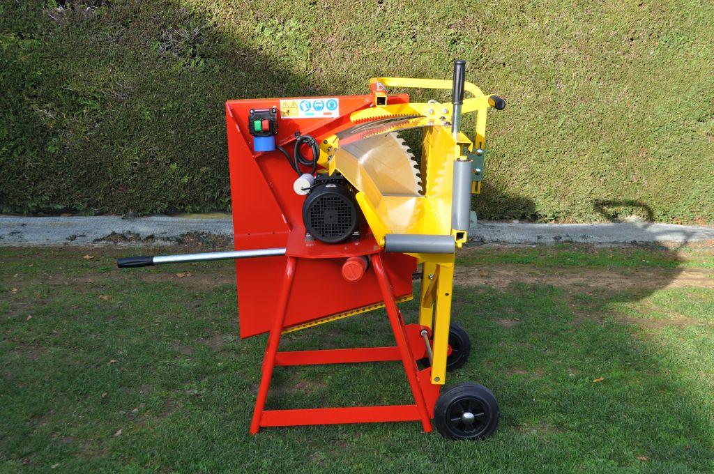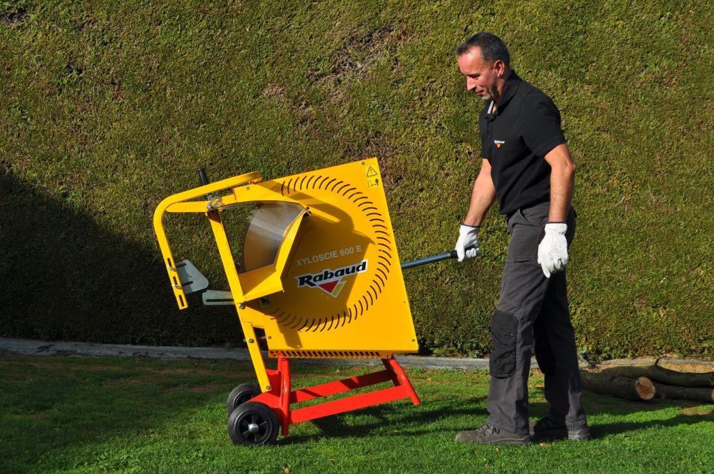– Ø lame 700 mm sur XYLOSCIE 700. - Chevalet porte-bûches pivotant avec décrochement pour limiter le coincement du bois sur la lame.