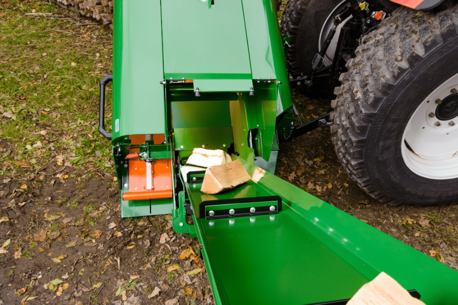 Coupe les bûches et le bois rond dans une cadence de 2,4 secondes. Les bûches sont poussées à une hauteur ergonomique dans le canal à bois à l’arrêt et glissent par gravité automatiquement vers la butée longitudinale. Le bois coupé est transporté sur le tapis d’évacuation, les bûches restantes glissent à nouveau devant la butée et le cycle redémarre du début.
