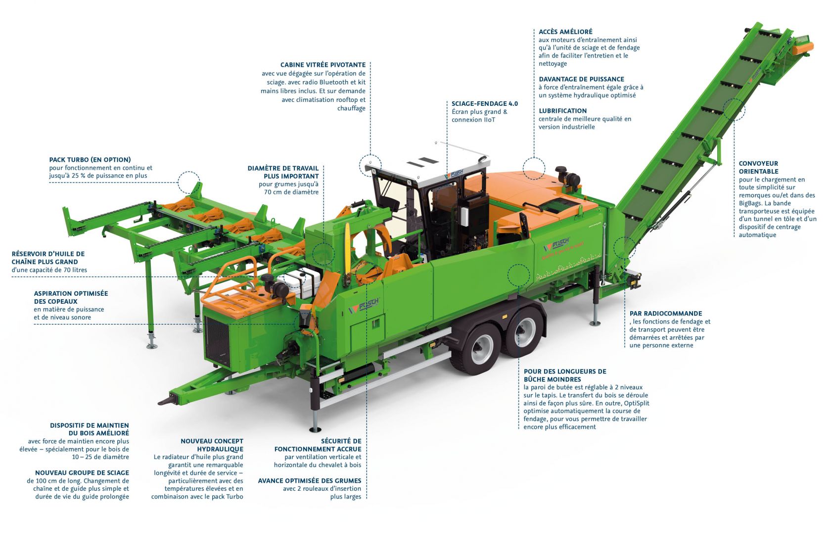 - Performant 70 cm Diamètre maxi. des grumes