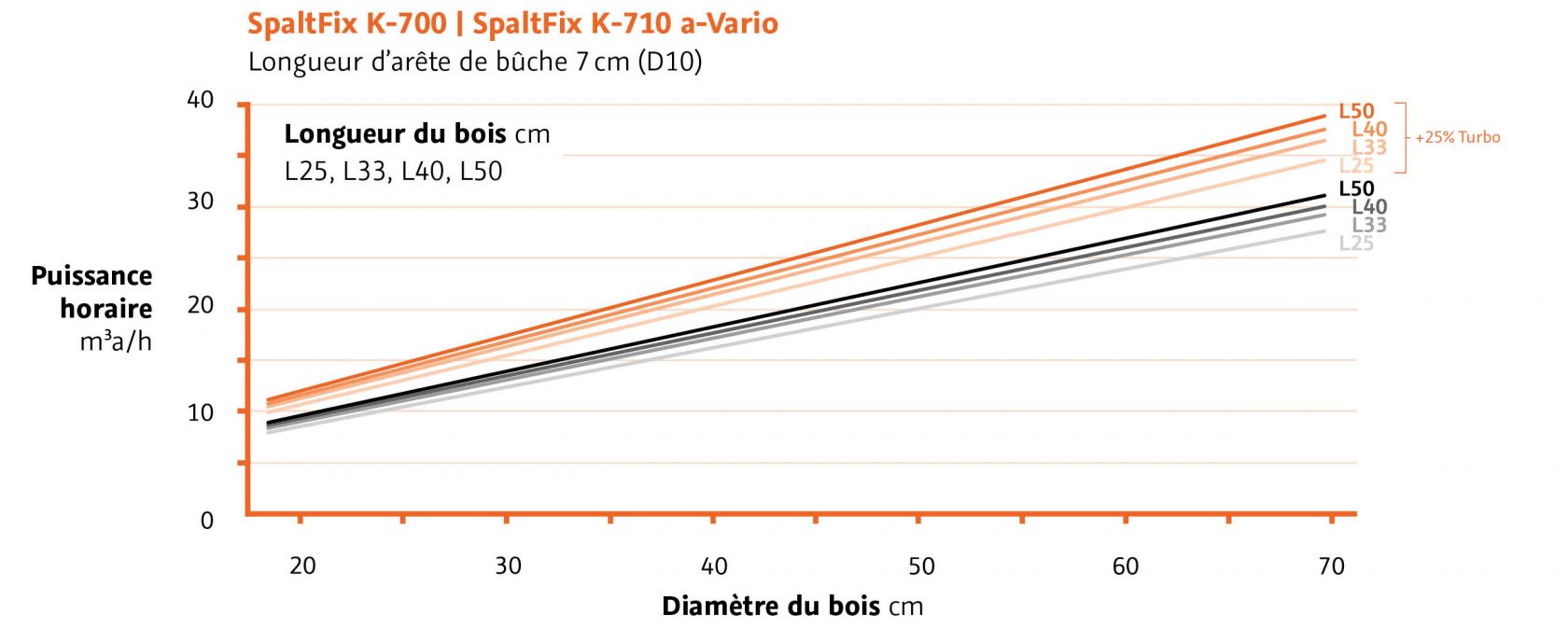 Le pack Turbo disponible en option augmente les performances de sciage et de fendage de 25 %.