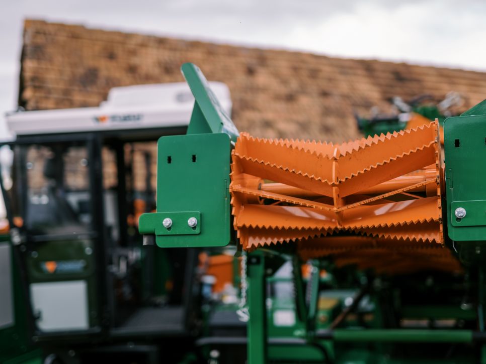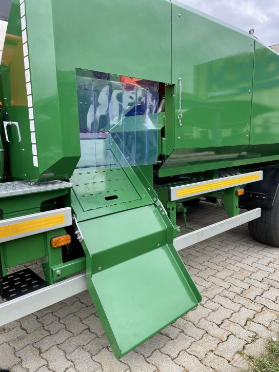 La bande transporteuse est équipée d’un tunnel en tôle et d’un dispositif de centrage automatique. Un tapis roulant pivotant est disponible pour un chargement efficace dans un BigBag ou sur une remorque.