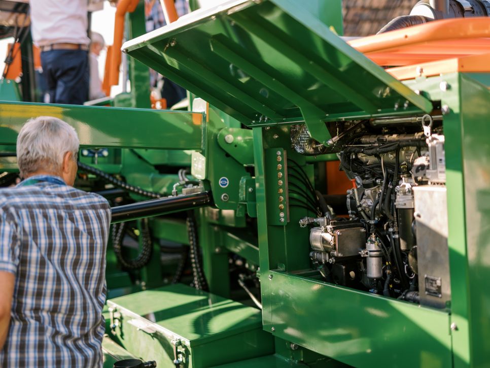 Avec le réservoir d’huile de graissage plus grand (capacité de 70 litres), vous pouvez scier jusqu’à 10 jours. En outre, les modules d’entraînement et l’unité de fendage sont accessibles afin de faciliter l’entretien et le nettoyage. La lubrification centrale est automatique.