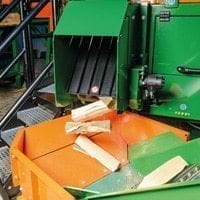 Grâce à la table pivotante, les immobilisations du tapis de transport sont minimisées et la production de bois de chauffage est ininterrompue grâce au système à deux tambours.
